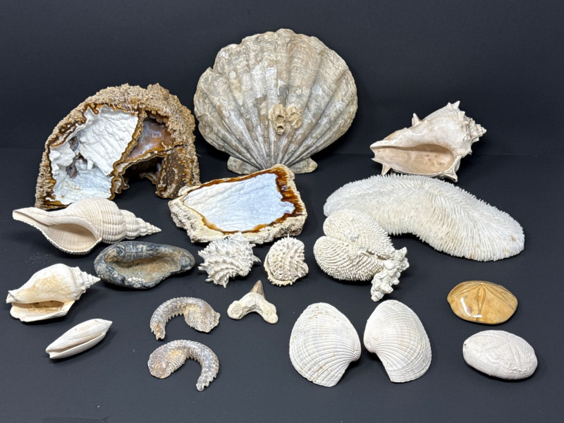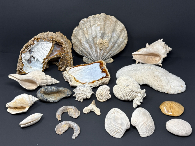 Seashells & Agatized Fossil Coral Geodes Collection Sand Dollars to Conch Shells-