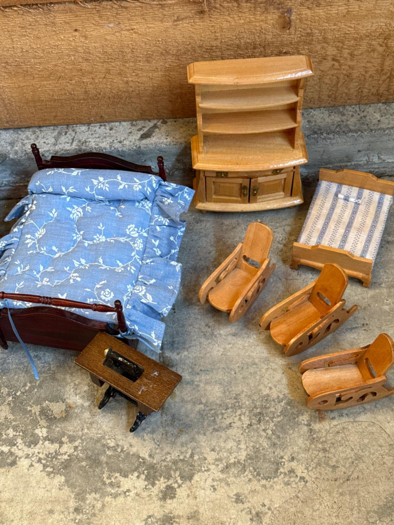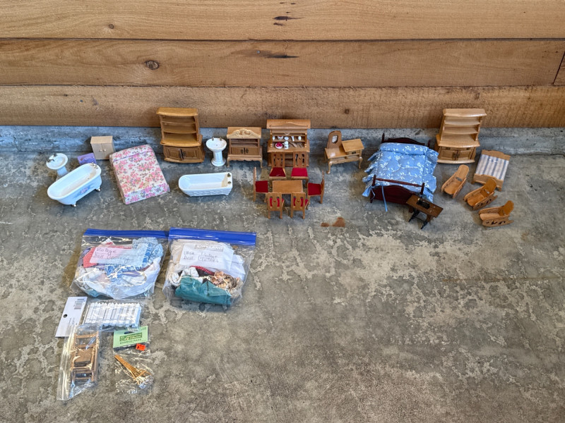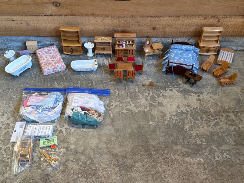 Lot # 145 - Miniature Vintage Doll House Furniture & Doll Clothes