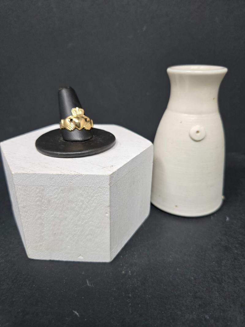 Lot # 5 - 14k Irish Claddagh Ring 3.49g, Size 9 w/Swet Mini-Vase from Ireland