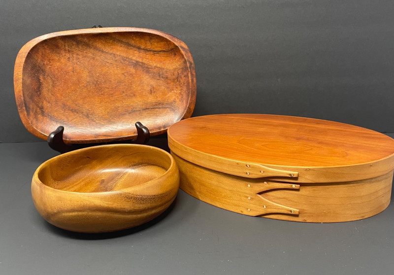Lot # 8 - Dan DeLuz Small Wood Tray, Wood Shaker Box & Small wood Bowl