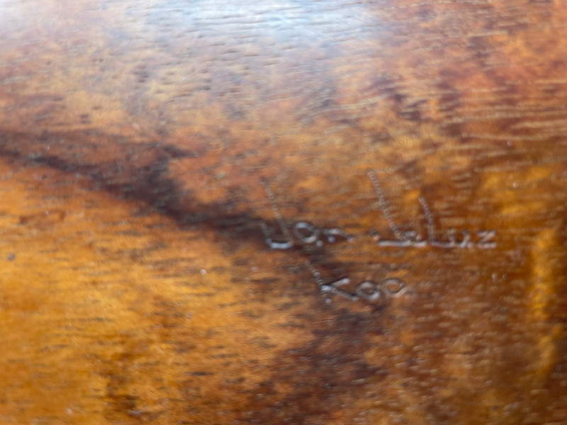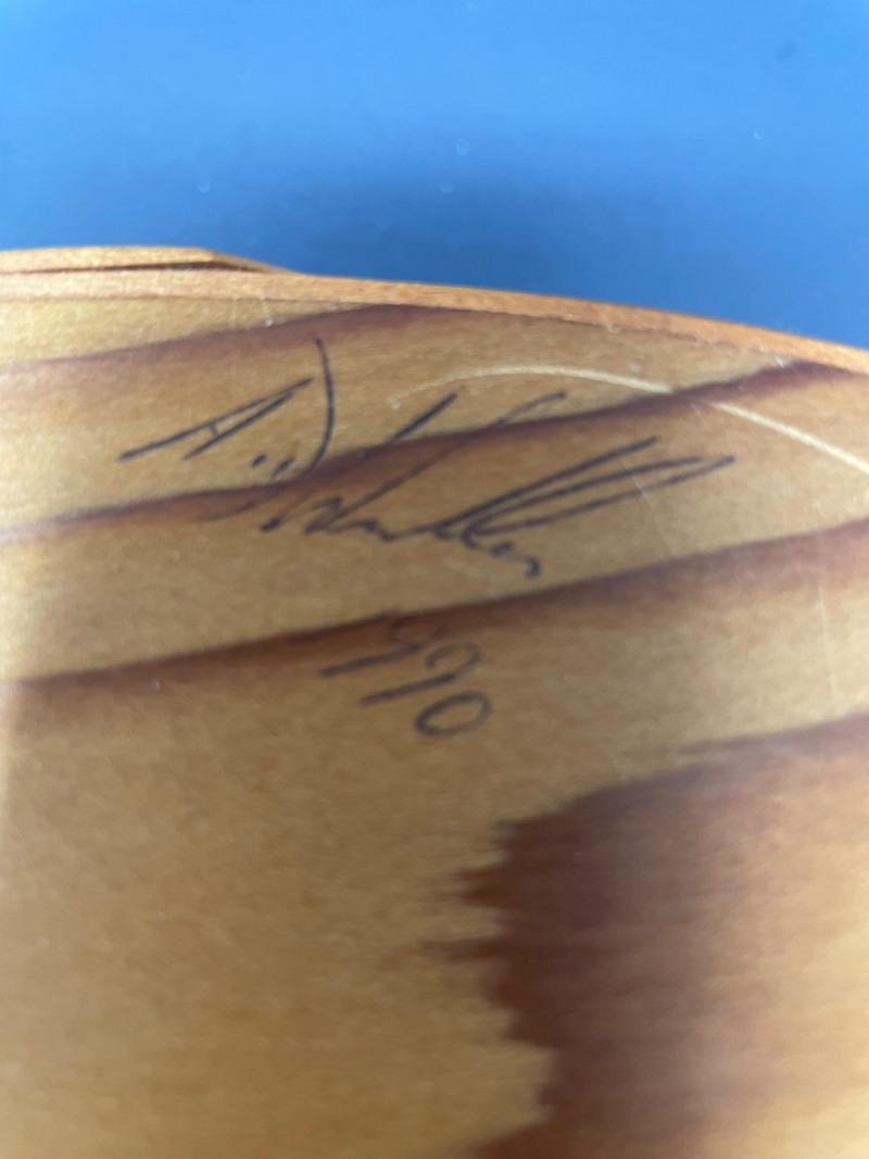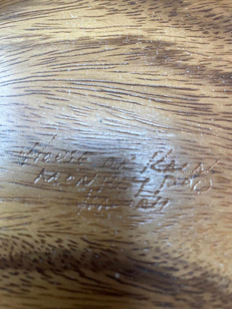 Features an undetermined artist signature on the bottom—an intriguing detail for collectors. House of Kain Wood Bowl