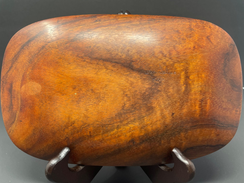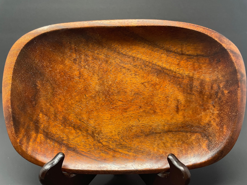 Trio of small wooden pieces—perfect for collectors of Hawaiian woodwork, lovers of handcrafted objects, or anyone building a warm, natural tabletop vignette. This lot blends the artistry of Dan DeLuz with the charm of traditional shaker craftsmanship and a petite bowl from House of Kain. Dan DeLuz Wood Tray