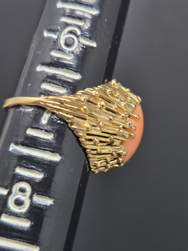 Lot # 11 - 14k gold 3.65g w/Coral Stone, Size 7