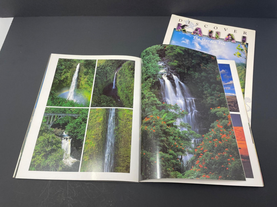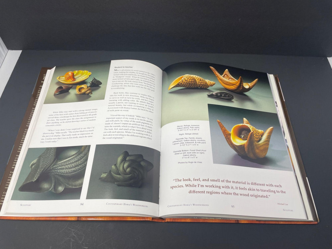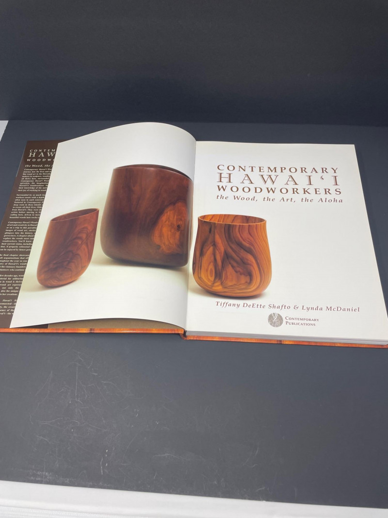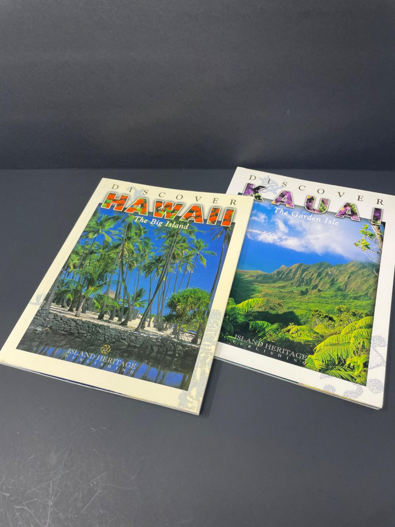 This curated lot includes: Books (7 total): Discover Kauai: The Garden Isle by Danni Grill Discover Hawaii: The Big Island by Danni Grill Hawaii: The Islands of Life Tides of Change by Colt Krauss Contemporary Hawaii Woodworkers by Shawfio & McDaniel Kim Taylor Reece (Hawaiian photography) Discovery: The Hawaiian Odyssey Decorative Accents: Woven basket with red-and-white hibiscus ribbon Two-tone wooden bowl Carved wooden sea turtle Circular woven floral ornament with orange flower center