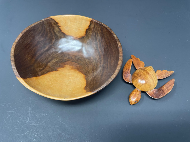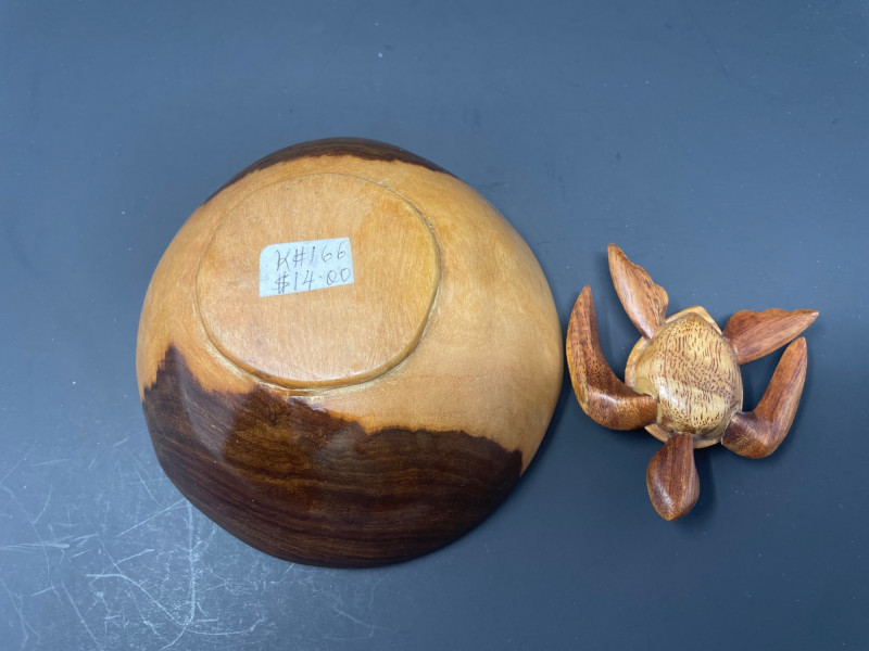 Large Basket:: 8”!Square x 6 1/2” H Small Basket: 7” Round x 4” H Wood Bowl: 5 3/4” x 3” Wood Turtle: 5” x 3” Hawaiian Books & Decorative Items Collection