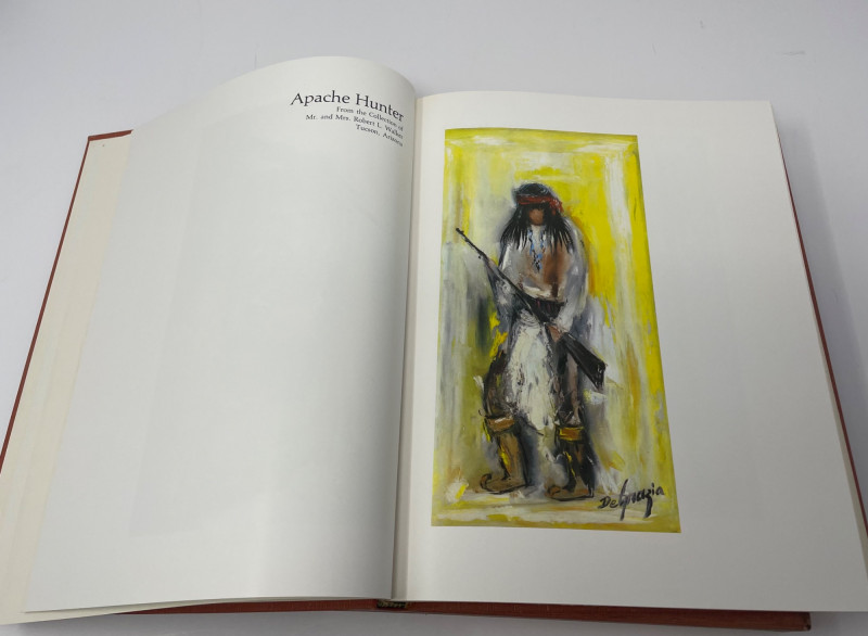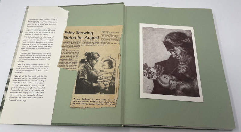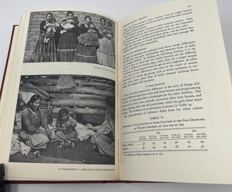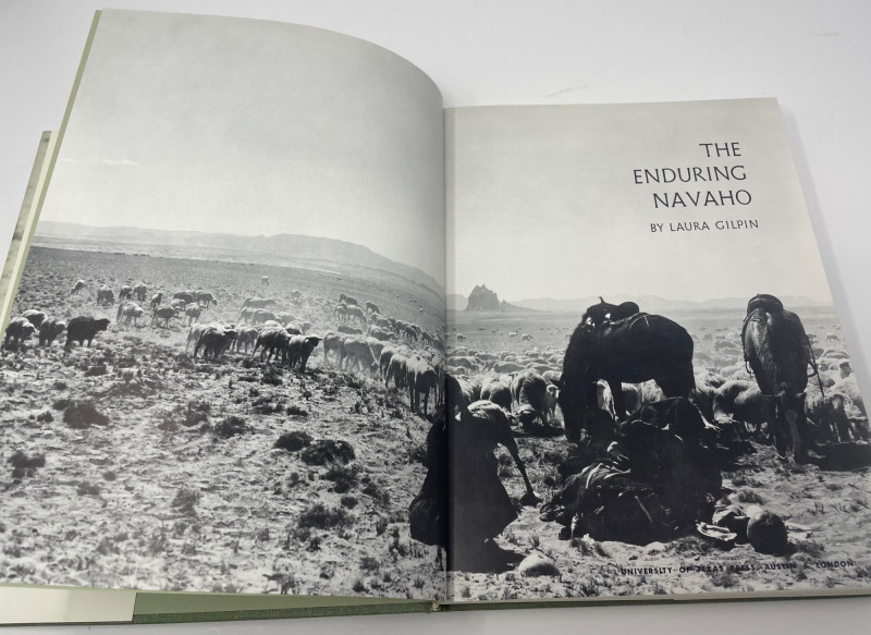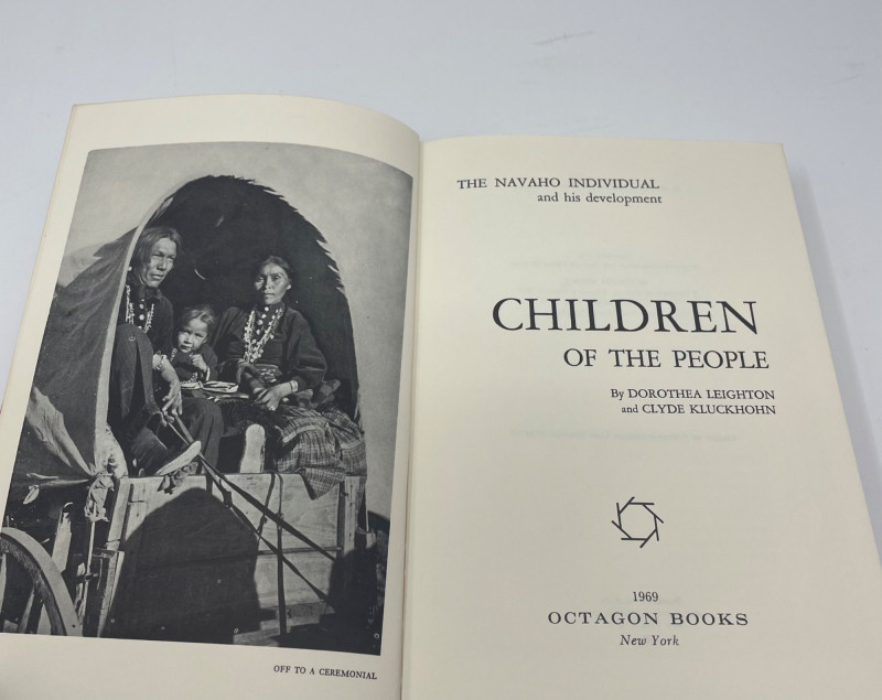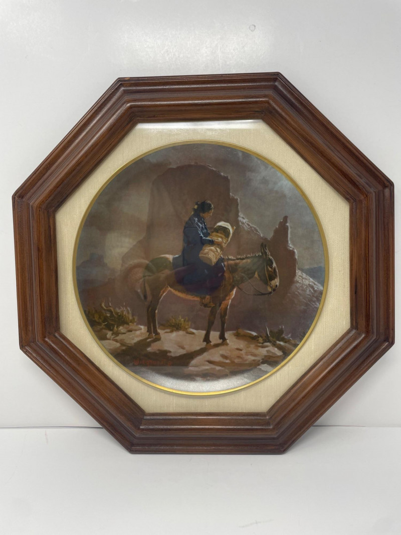 This lot includes a framed octagonal painting depicting a figure on a donkey traversing a desert landscape with towering rock formations—evocative of the American Southwest and Navajo territory. Complementing the artwork are four books focused on Native American culture, history, and storytelling: Children of the People by Leighton and Kluckhohn The Enduring Navaho by Gilpin Troopers West by Barnes The Great Migration by Carlo, Mariah, and Groze Together, these items offer a thoughtful blend of visual and literary insight into Indigenous experience and Western expansion. Artwork: Framed desert scene with rider and donkey Books: 4 titles on Navajo life, migration, and Western history Condition: Excellent; clean pages and well-preserved frame
