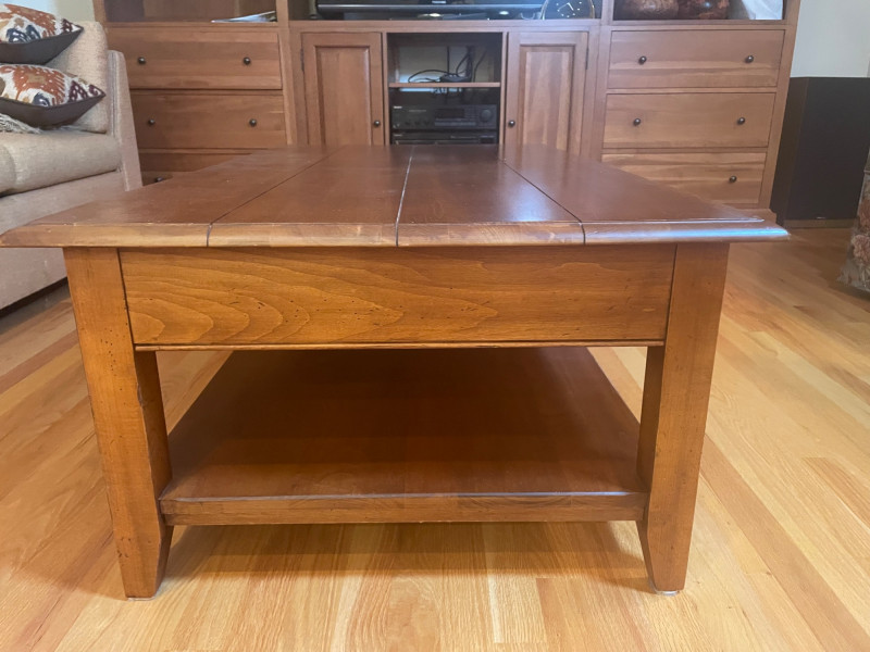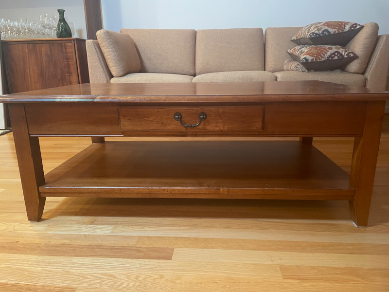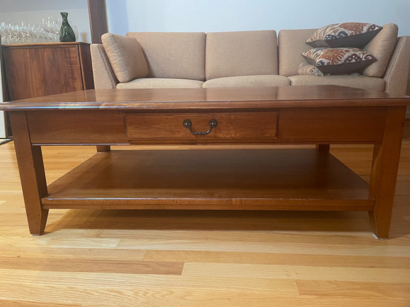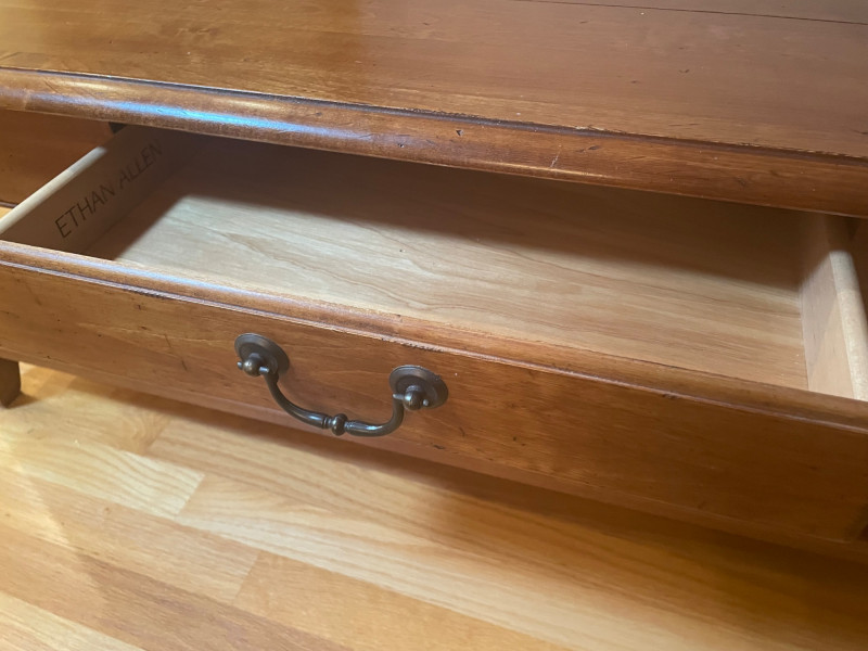 Ethan Allen Coffee Table with Drawer & Shelf