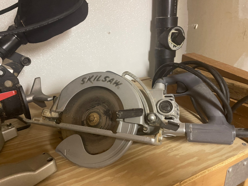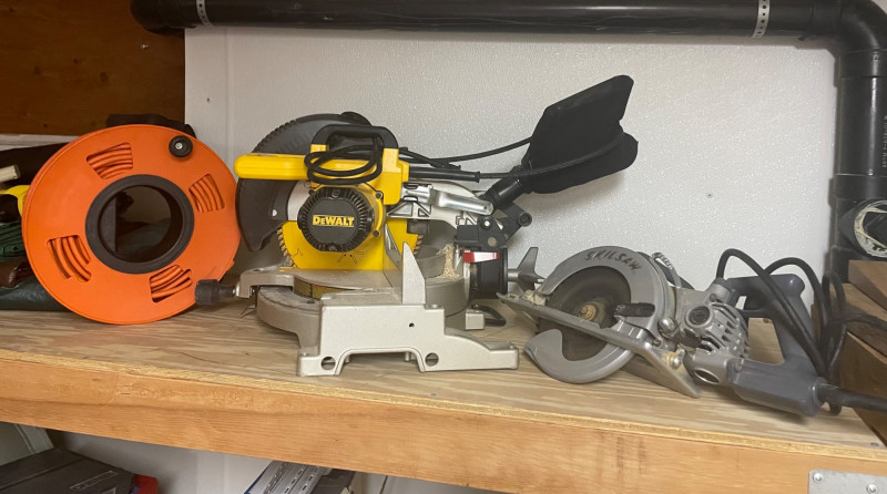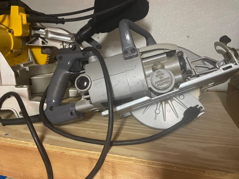 Lot #64 – DeWalt Miter Saw, SKIL Circular Saw, and Extension Cord Reel is a ready-to-roll power tool trio for precision cutting and workshop efficiency. Power Tool Set for Woodworking & Construction