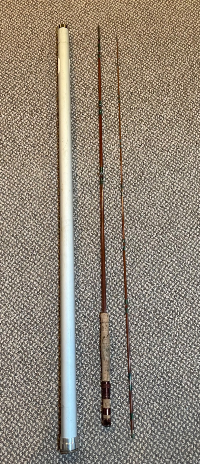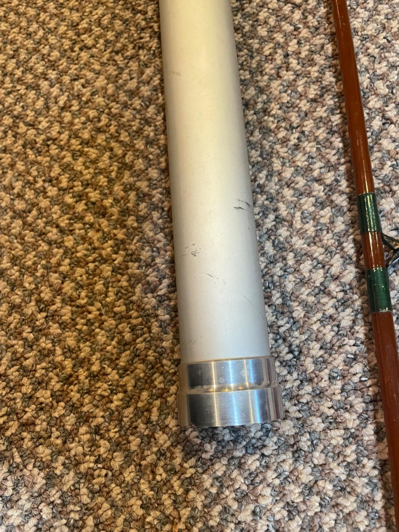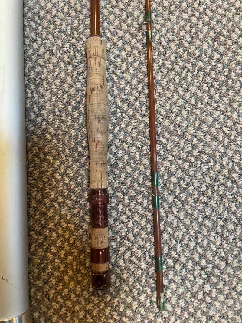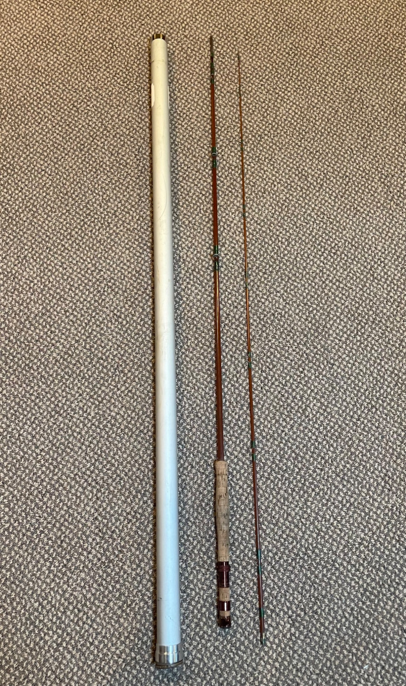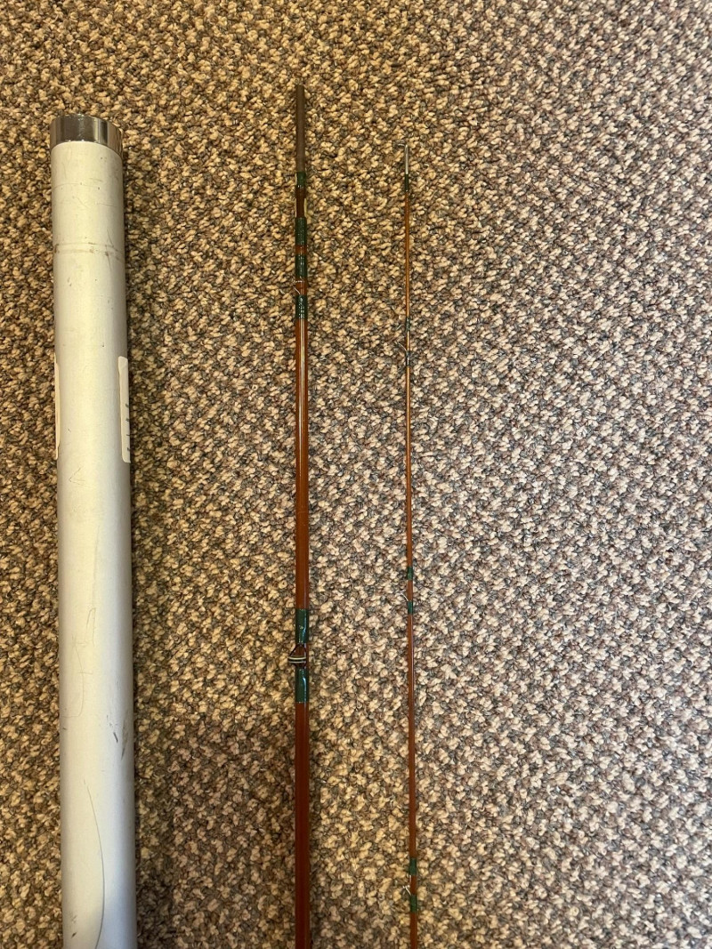 This lot includes: Fly Fishing Rod – Reddish-brown rod with green thread wraps, stored in a silver travel tube for protection and portability Orvis Super Tac-L-Pak Vest – Tan women’s fishing vest with multiple pockets and compartments for flies, tools, and accessories Chest Waders – Brown waterproof waders with black suspenders and brown straps; designed for comfort and mobility in water Brands: Orvis (vest), unspecified rod and waders Condition: Excellent; clean and lightly used