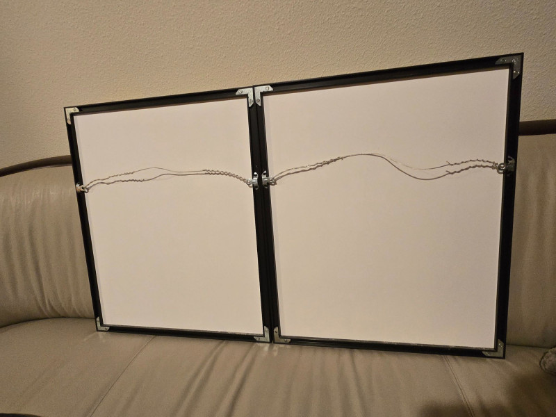 A striking diptych of Indigenous artistry featuring birds, foliage, and symbolic motion Description