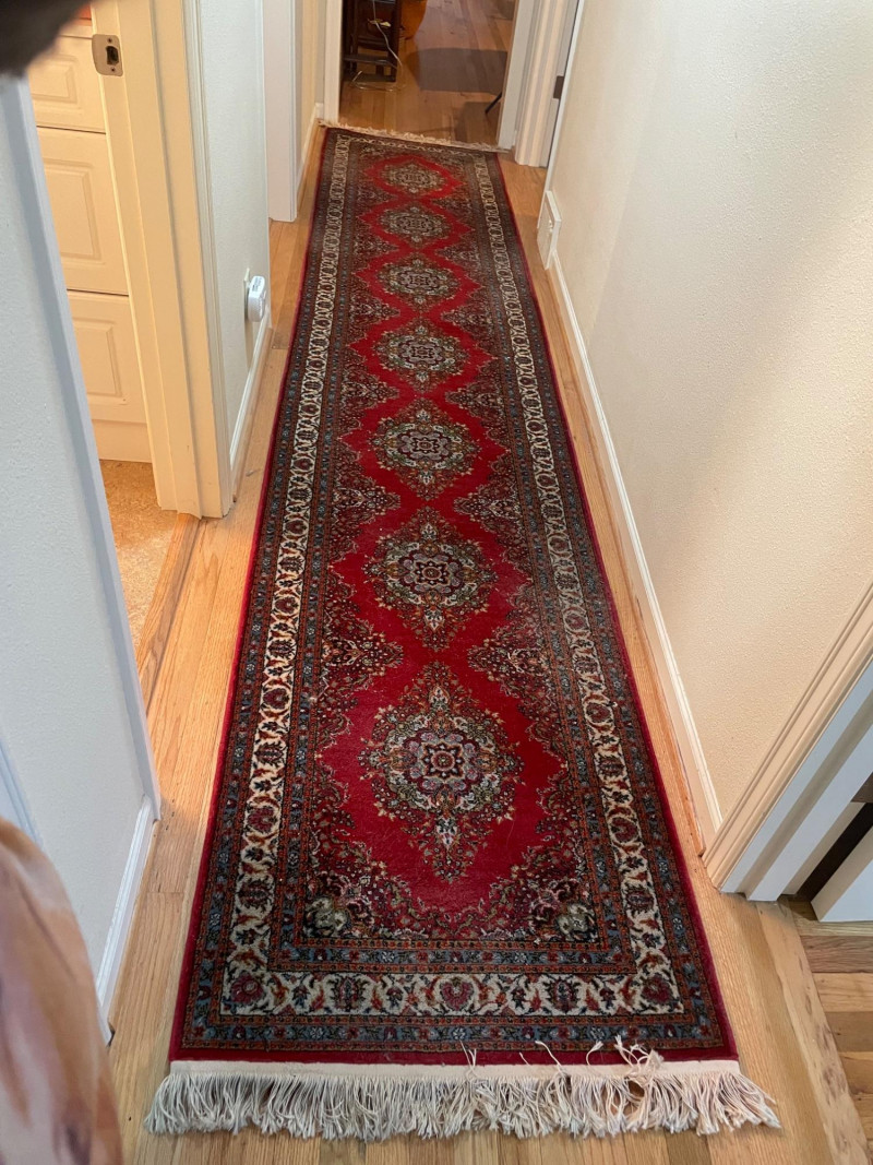 162” L x 31/2’ W Red Persian-Style Runner with Diamond Medallions