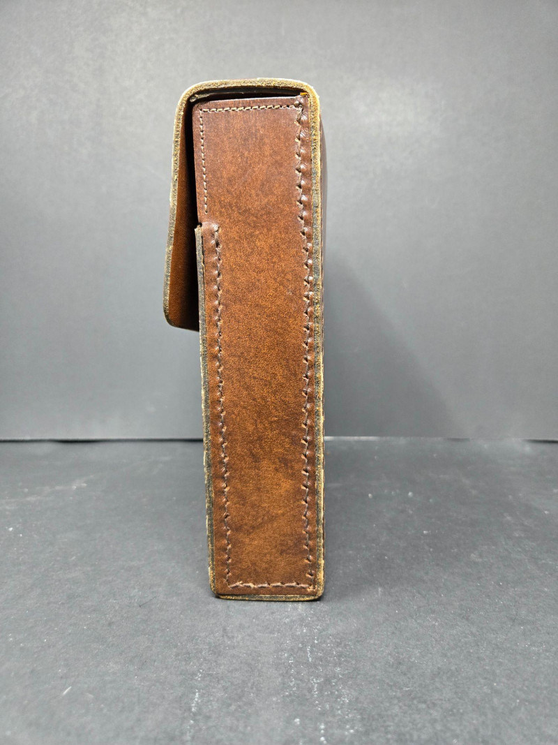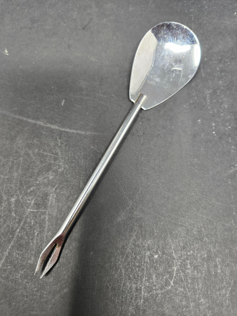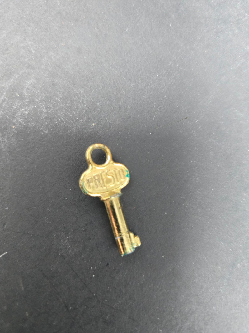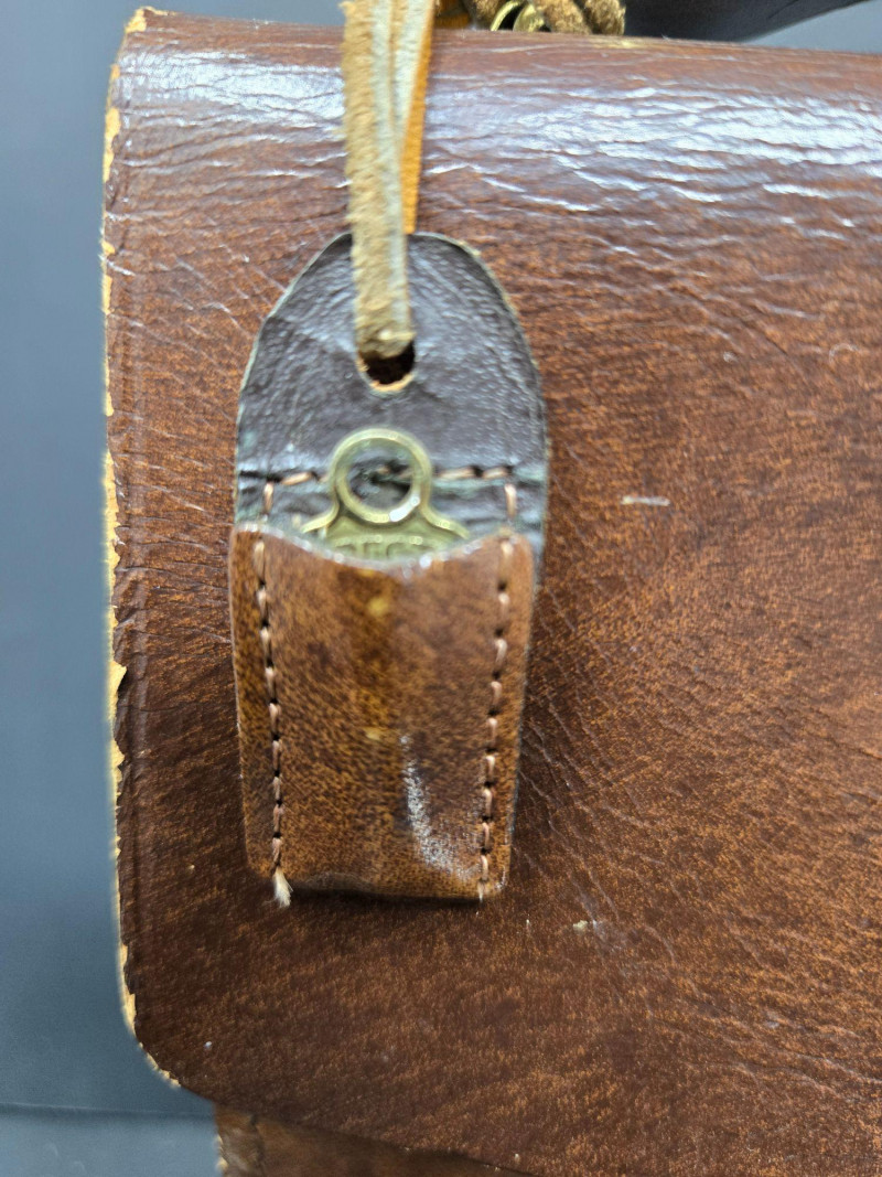 Vintage Traveling Bar Case with Presto Key, is a nostalgic and stylish set perfect for collectors or entertainers with a taste for classic flair. Brown leather case: Compact and structured with a brass clasp, evoking mid-century travel elegance. Two clear glass flasks: Each with shiny silver-tone caps, ideal for spirits or mixers. Presto key: A vintage accessory, for securing the case. Bar tools: Includes a metal corkscrew and small spoon, completing the portable cocktail setup.