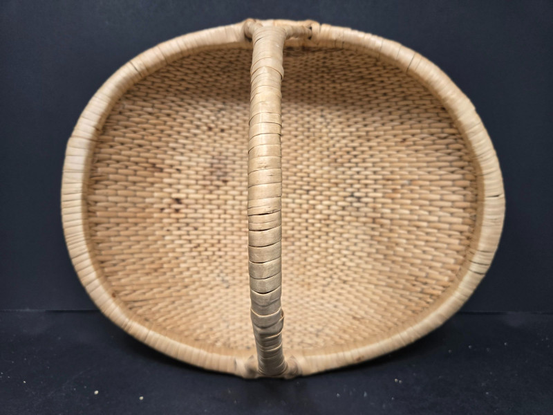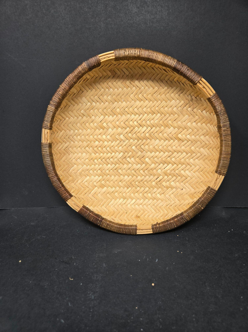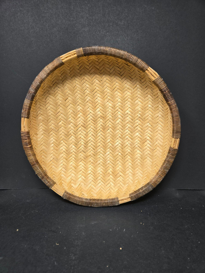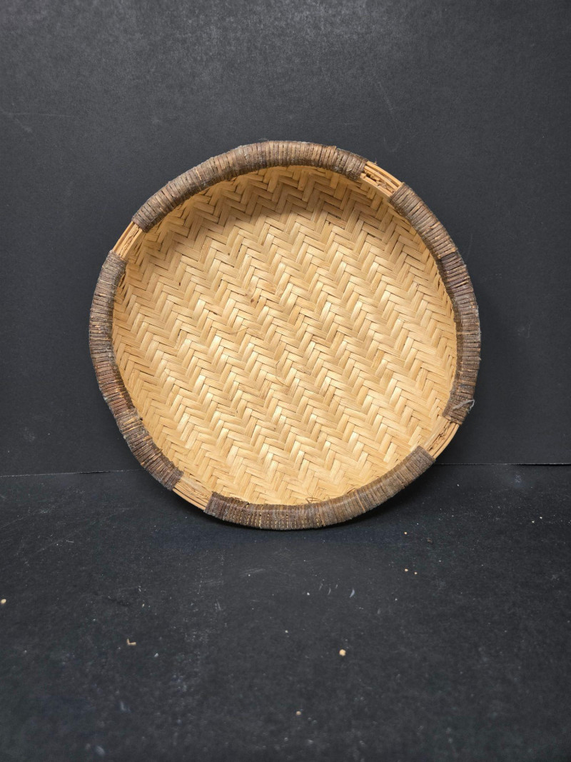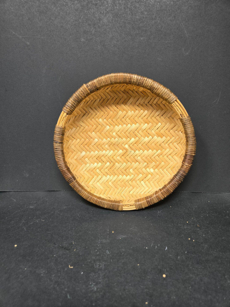 Nesters 7-13 1/2" Lg oblong 15"w x 13"d x18"t (to top of handle) Sm oblond 15" x 11" x 10 1/2t Oval 13" x 10 1/2" 9"t Collection of 9 Woven Baskets, is a versatile and visually appealing set ideal for storage, display, or staging. 6 Nesting Baskets: Round woven trays with varied light and dark patterns, stackable for compact storage or layered presentation. 2 Oblong Baskets: Rectangular with handles, perfect for organizing linens, pantry items, or crafting supplies. 1 Oval Basket: Smooth curves and a wide opening make it ideal for fruit, mail, or decorative arrangements. Crafted from natural fibers like rattan or wicker, these baskets showcase traditional weaving techniques and earthy charm.