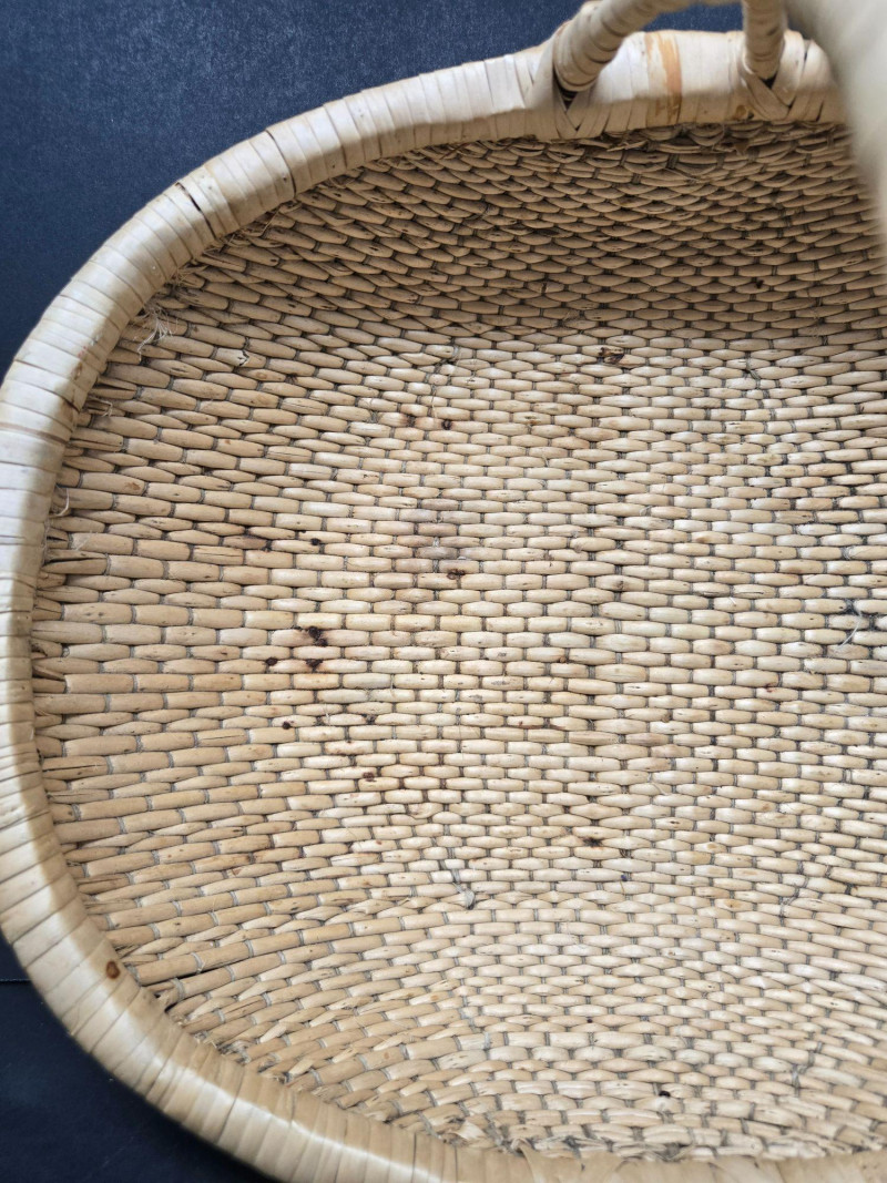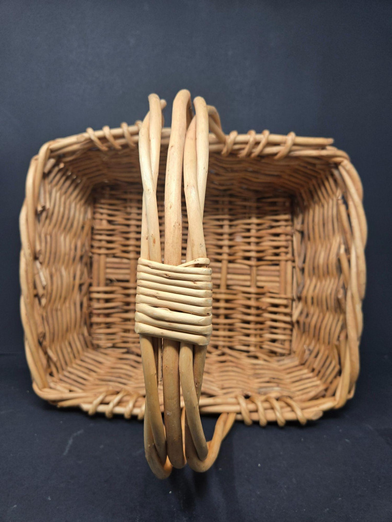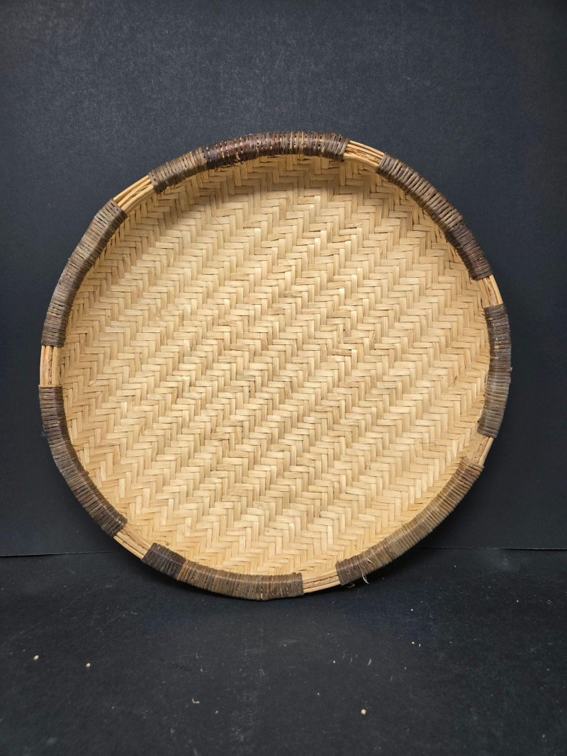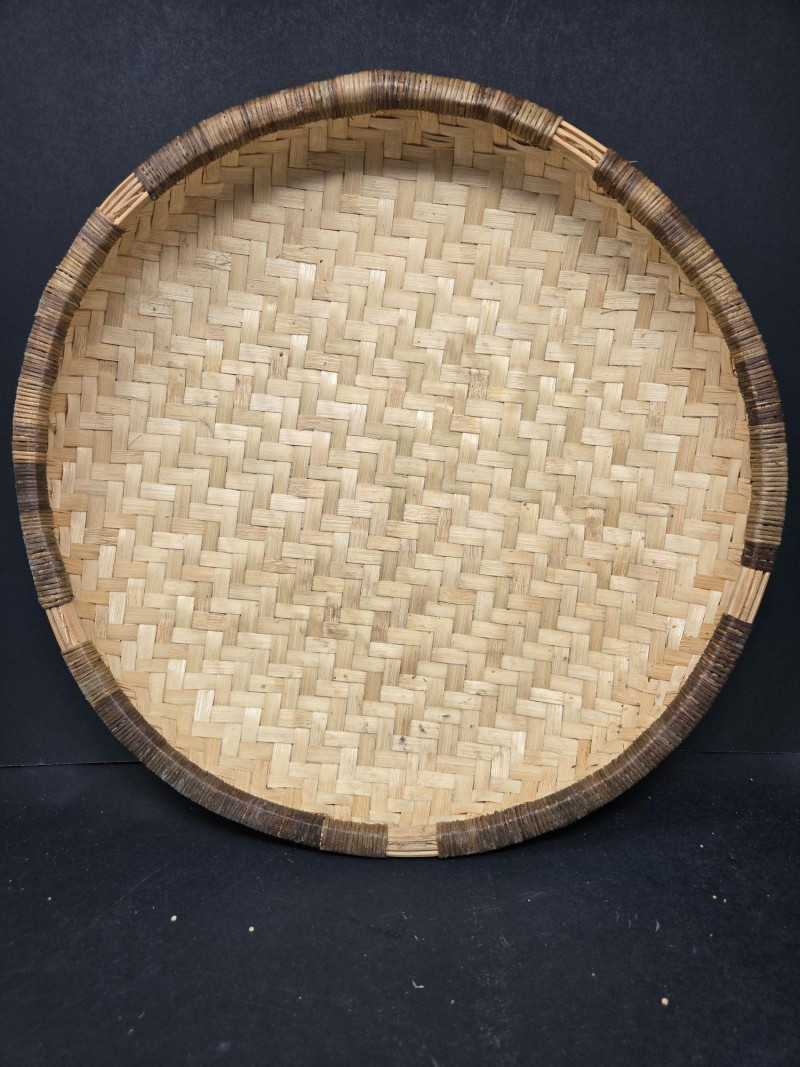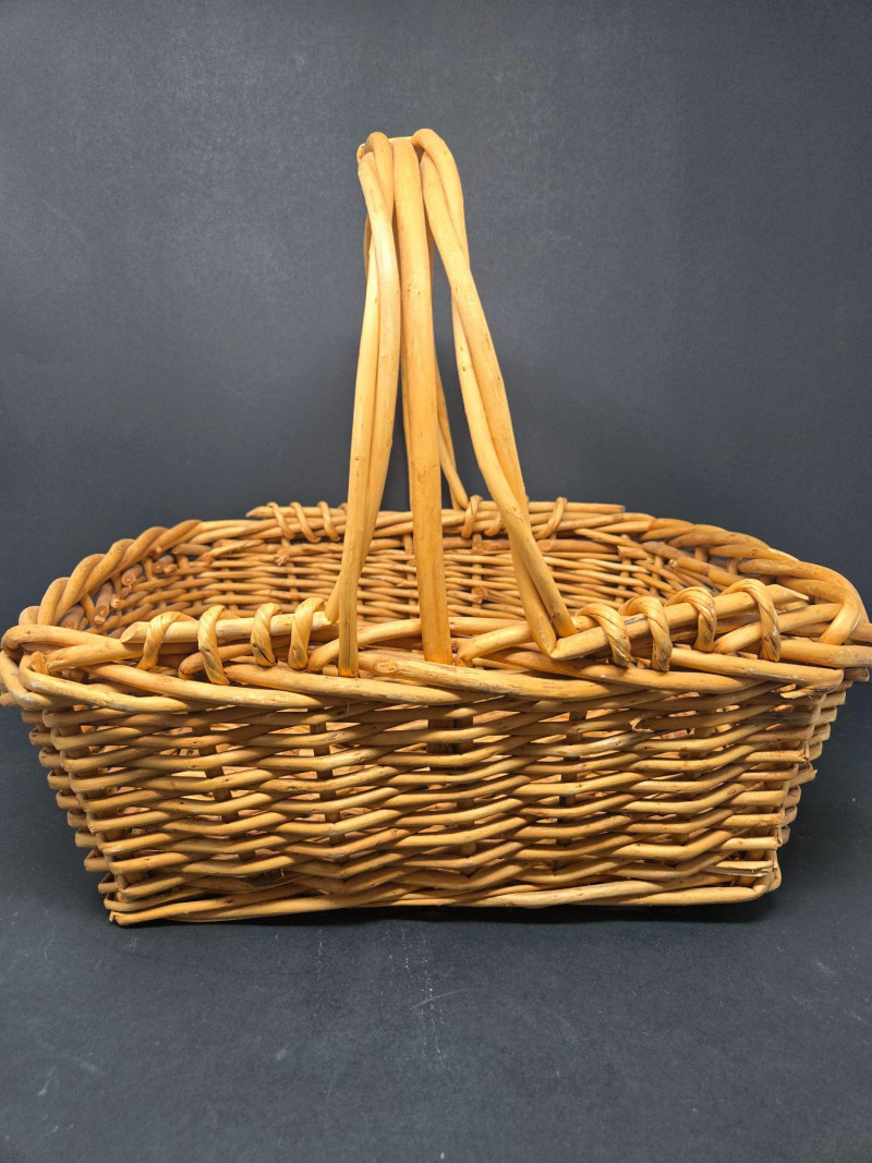 Nesters 7-13 1/2" Lg oblong 15"w x 13"d x18"t (to top of handle) Sm oblond 15" x 11" x 10 1/2t Oval 13" x 10 1/2" 9"t Collection of 9 Woven Baskets, is a versatile and visually appealing set ideal for storage, display, or staging. 6 Nesting Baskets: Round woven trays with varied light and dark patterns, stackable for compact storage or layered presentation. 2 Oblong Baskets: Rectangular with handles, perfect for organizing linens, pantry items, or crafting supplies. 1 Oval Basket: Smooth curves and a wide opening make it ideal for fruit, mail, or decorative arrangements. Crafted from natural fibers like rattan or wicker, these baskets showcase traditional weaving techniques and earthy charm.
