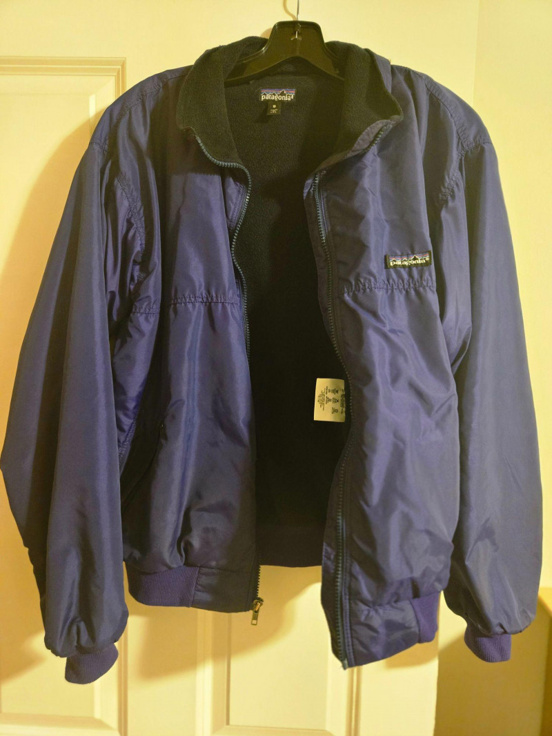 This Patagonia jacket features a royal blue exterior with black trim and a fleece-lined collar for added warmth. Designed with a full front zipper and two zippered side pockets, it offers both style and practicality. Brand: Patagonia Size: Women’s Small Color: Royal blue with black accents Features: Front zip closure, zippered pockets, fleece-lined collar Condition: Excellent; gently used with no visible damage