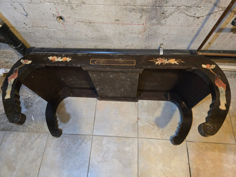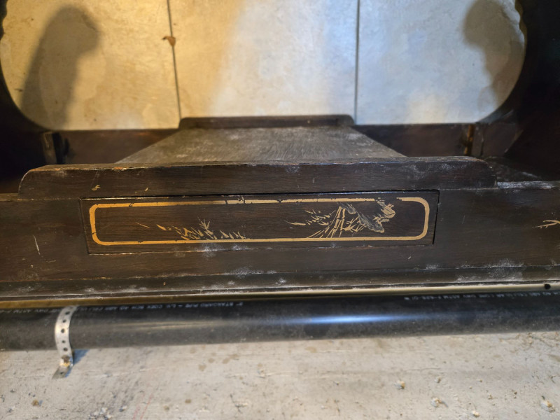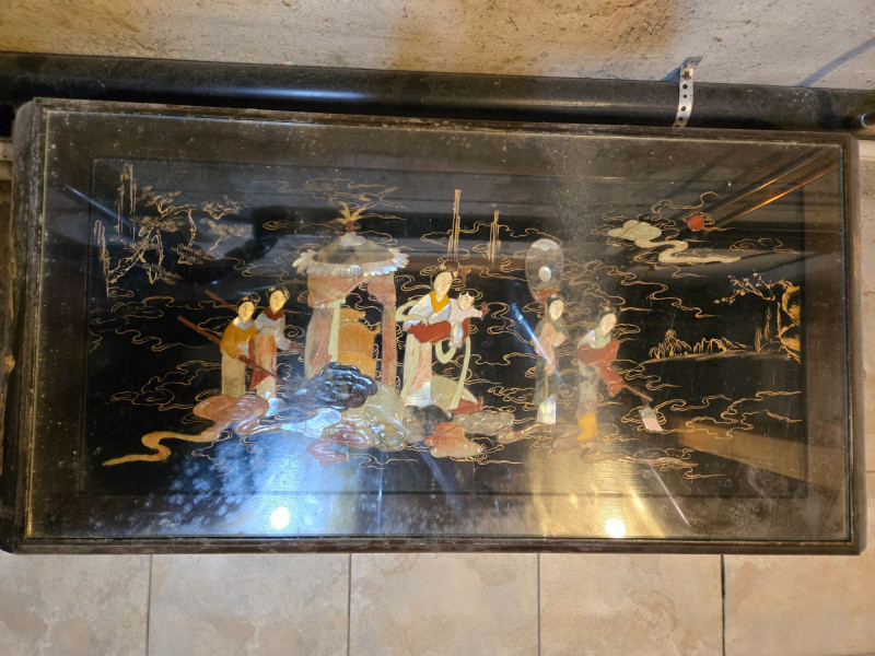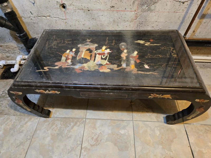 15t x 18d x 39"l needs some tlc, still stunning Asian Embossed Coffee Table is a richly detailed and visually captivating piece that blends functional furniture with traditional storytelling. Based on your listing and the image, here’s a refined, auction-ready description: Asian Embossed Coffee Table
