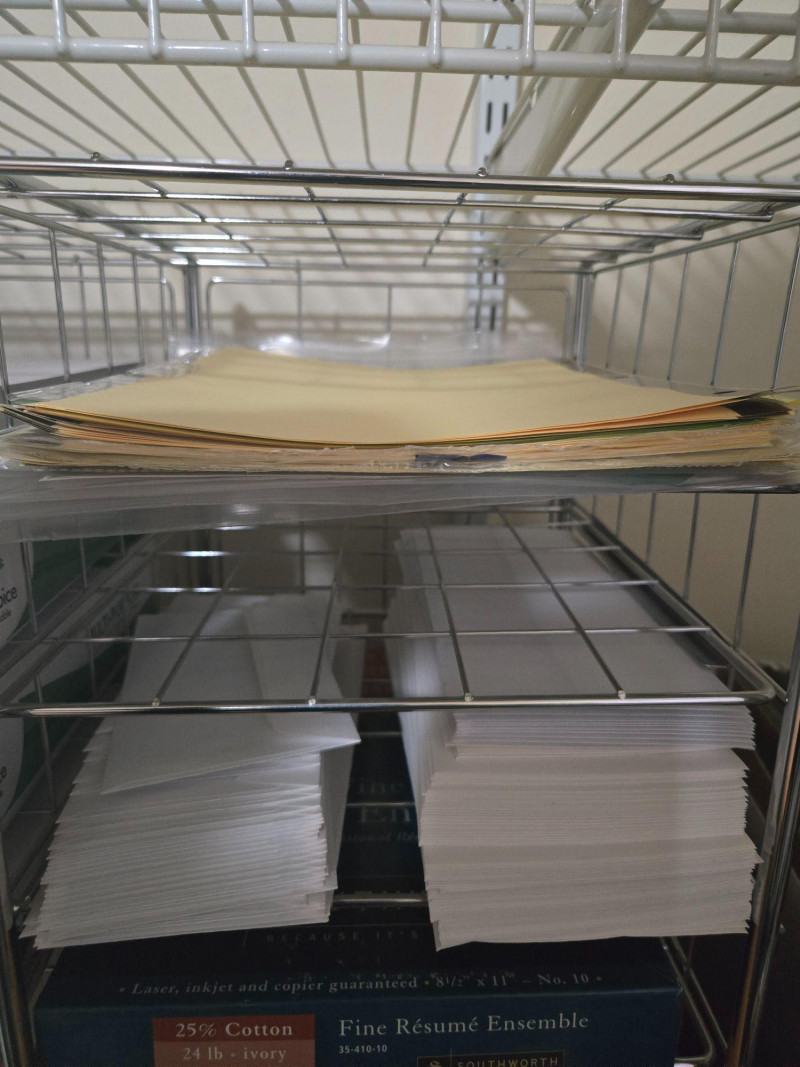 A complete setup for document management, featuring mobile file carts, shelving, and supplies Description