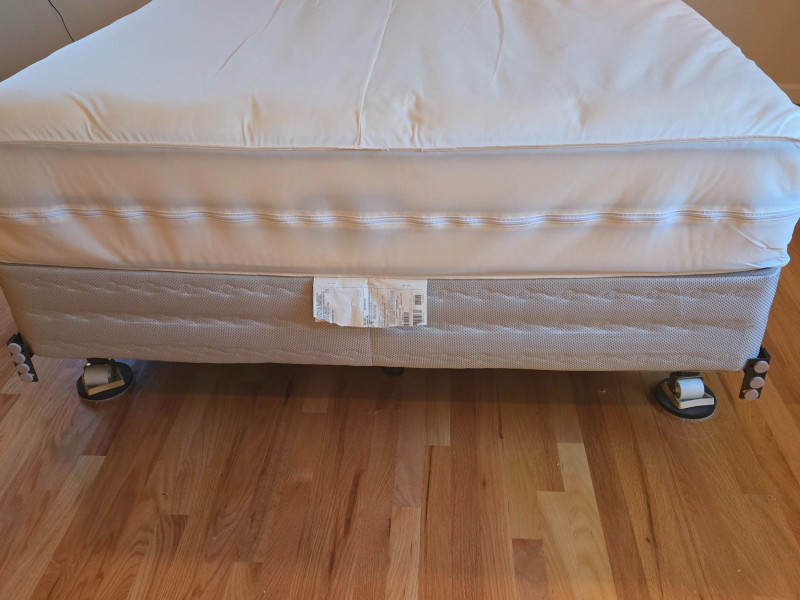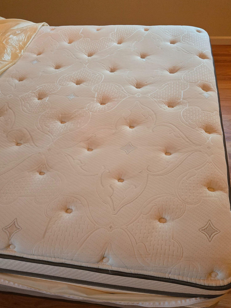 This queen-sized mattress from the Beautyrest Vanderbilt® Collection features a plush quilted top and signature pocketed coil technology for enhanced support and motion isolation. The label is stitched into the fabric, confirming its premium branding and craftsmanship. Brand: Beautyrest Collection: Vanderbilt® Size: Queen Features: Quilted top, pocketed coil support, stitched branding Condition: Excellent; clean and well-maintained