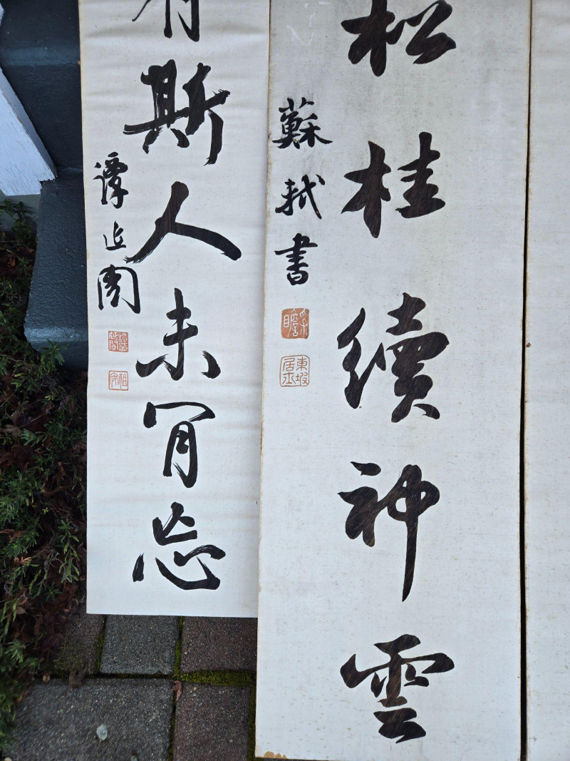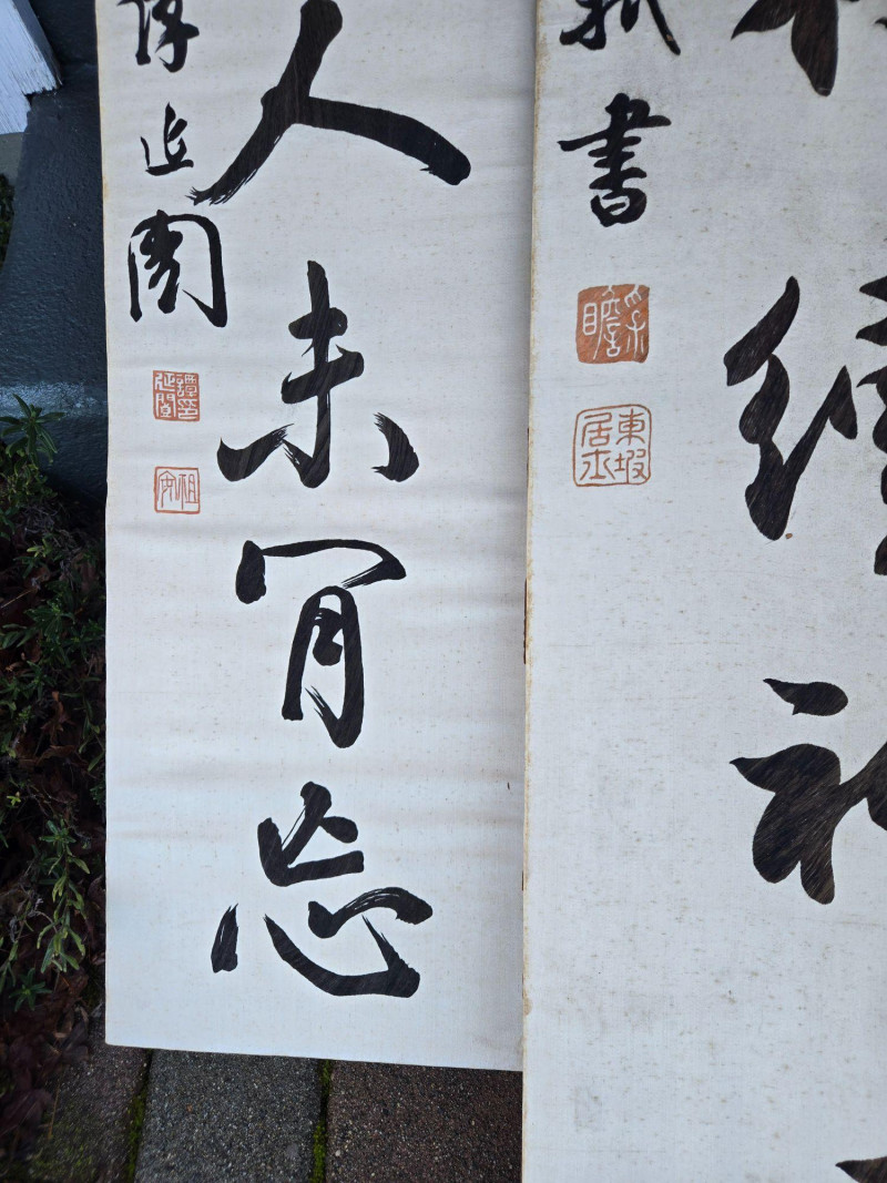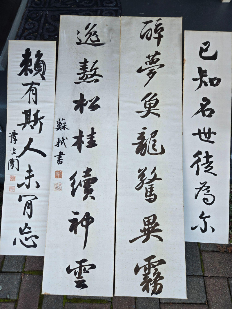 Four Chinese Calligraphy Scrolls Tall's 51" x 12" Shorter one's 40"t x 9"w