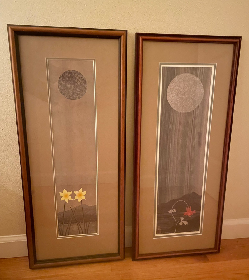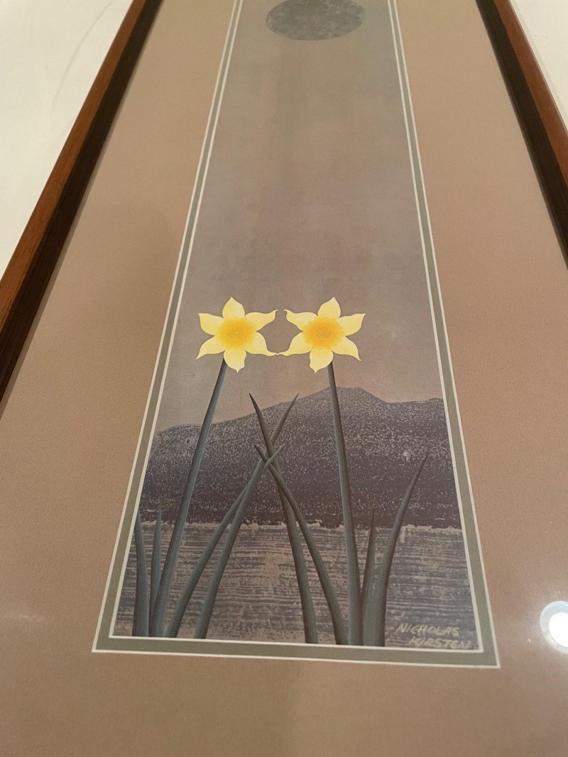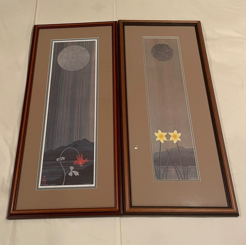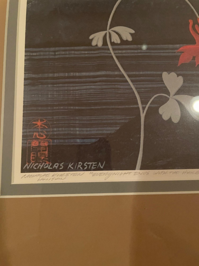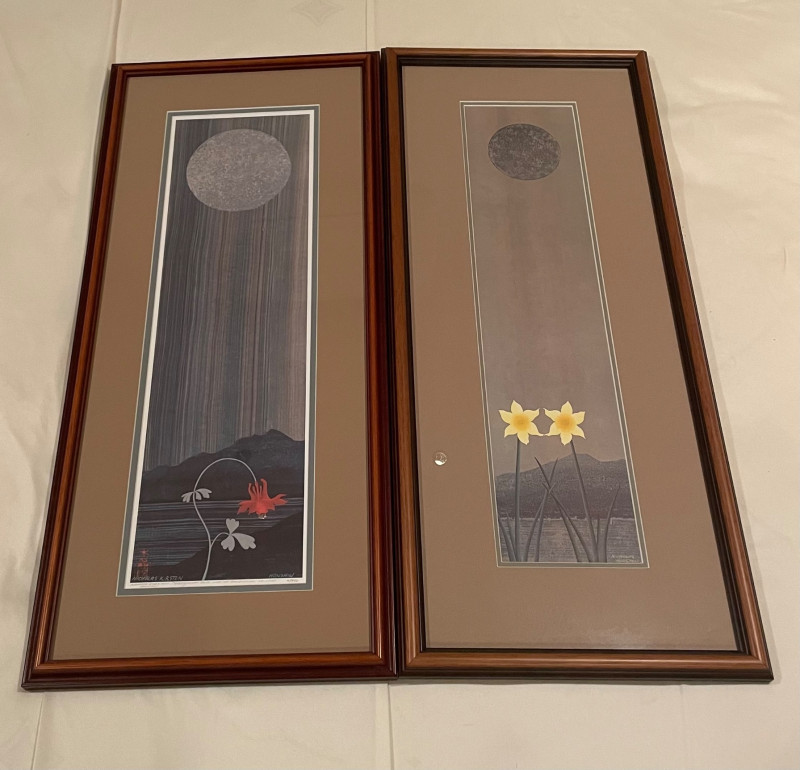 Each approx. 29" H x 13" A paired offering of two works by artist Nicholas Kirsten, each capturing a distinct seasonal mood through luminous color and stylized form. Together, they create a compelling visual dialogue—night giving way to dawn, and winter yielding to spring. “Every Night Ends w/Harbinger of Light” Signed Edition #2 of 950 Approx. 29" H x 13" A contemplative composition symbolizing transition, renewal, and the quiet promise of morning. “Celebration of Spring” Approx. 29" H x 13" A vibrant, uplifting piece evoking growth, color, and the energy of the season’s return. Expect normal signs of wear consistent with previously owned artwork. All items are sold AS IS, with no guarantees on condition or completenessNicholas Kirsten – “Every Night Ends w/Harbinger of Light” & “Celebration of Spring”