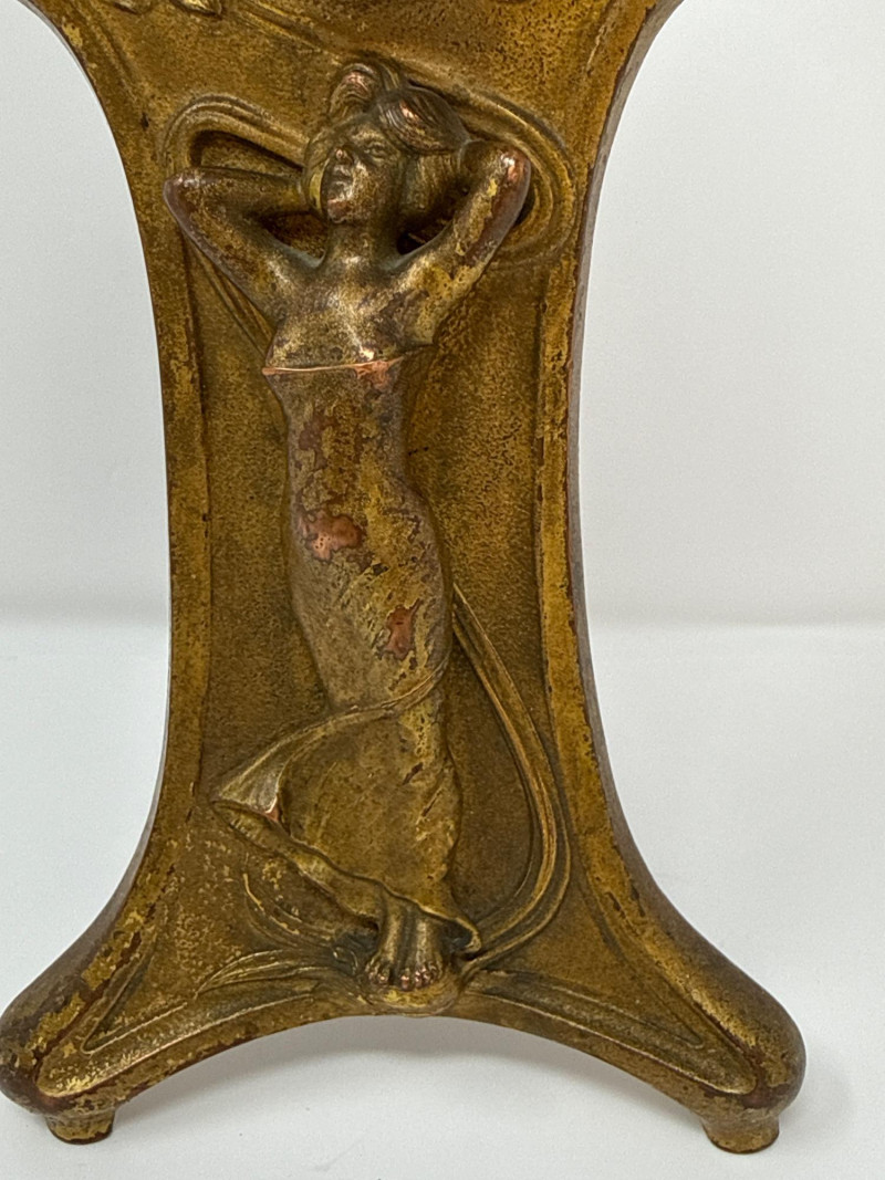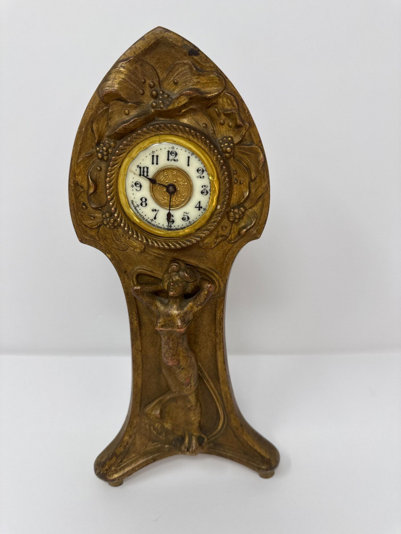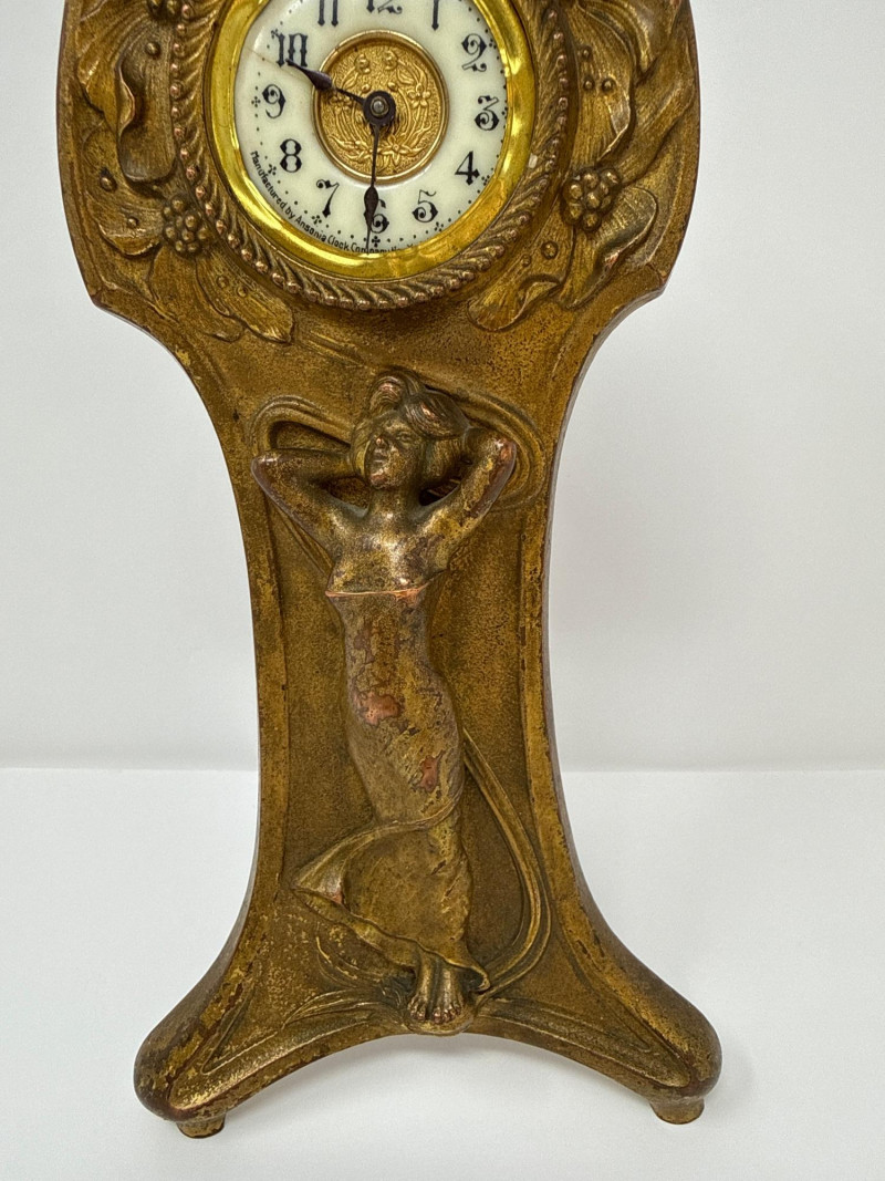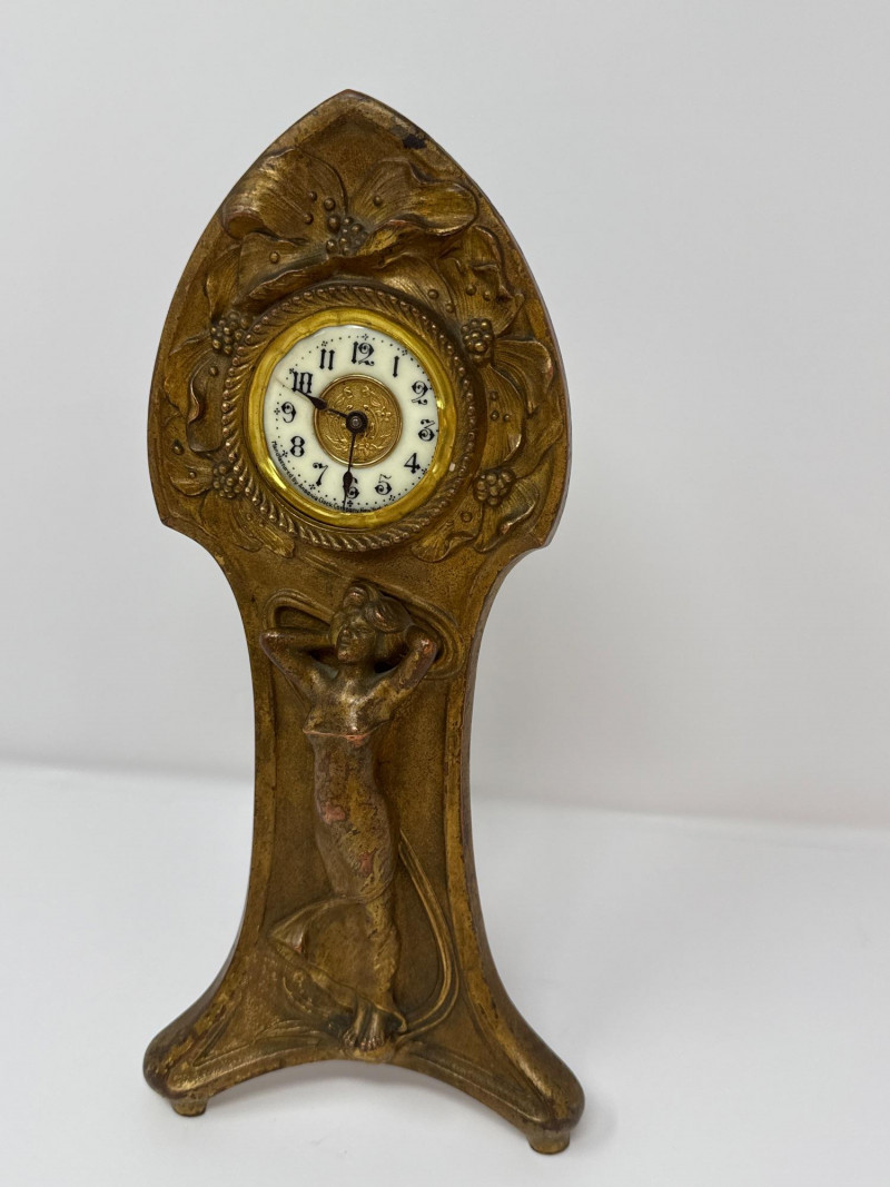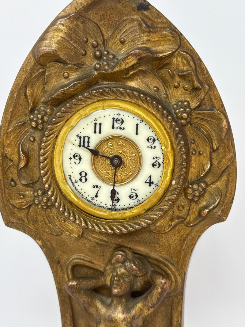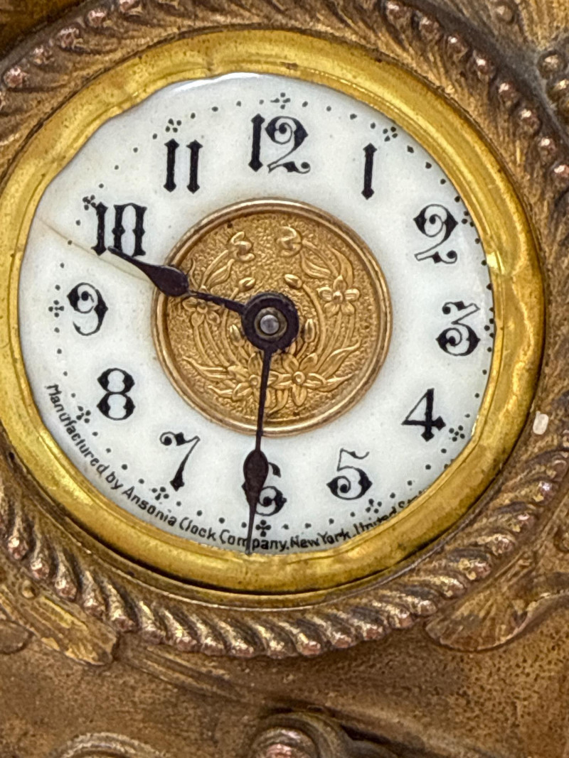 Lot # 2 - Antique Ansonia Cast Metal Mantle Clock with Art Nouveau Motif