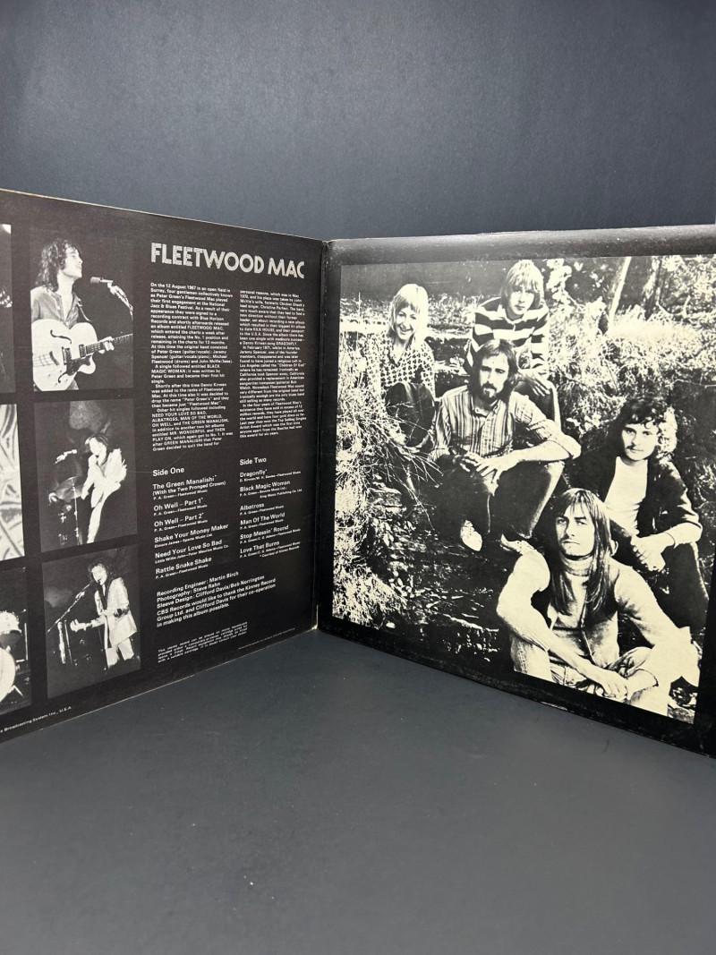 This is a substantial vintage vinyl collection featuring five (5) original Fleetwood Mac LP albums, spanning the band’s early blues-rock roots through their early-1970s classic rock era. The lot includes studio albums, a greatest-hits compilation, and a deluxe two-record retrospective set. Together, these albums showcase Fleetwood Mac’s evolution from the Peter Green blues era into the Bob Welch period, capturing some of the band’s most influential songwriting, iconic artwork, and enduring tracks. A strong, display-worthy and listenable group ideal for collectors, classic rock fans, or vintage vinyl buyers. Original studio album Features the minimalist tree artwork Includes notable tracks such as Sentimental Lady Single LP Original studio album Iconic surreal cover artwork Includes tracks such as Hypnotized and Emerald Eyes Single LP Early self-titled studio album Distinct black-and-white cover featuring the “doorway” imagery Represents the transitional period of the band Single LP Classic compilation album Includes fan favorites such as: Albatross Black Magic Woman The Green Manalishi Oh Well (Part 1 & 2) Single LP Deluxe Two-Record Set (2 LPs / 4 sides) Gatefold sleeve with liner notes and full track listings Broad retrospective covering early blues and rock recordings One title, counts as one album, but contains two LP records Artist: Fleetwood Mac Total Albums: 5 Total Vinyl Records: 6 LPs (4 single-LP albums + 1 double-LP set) Format: Vinyl LP, 33⅓ RPM Sleeves: Original sleeves included Gatefold: Yes (Vintage Years) Era: Late 1960s – early 1970sIncluded Albums (5 Total):