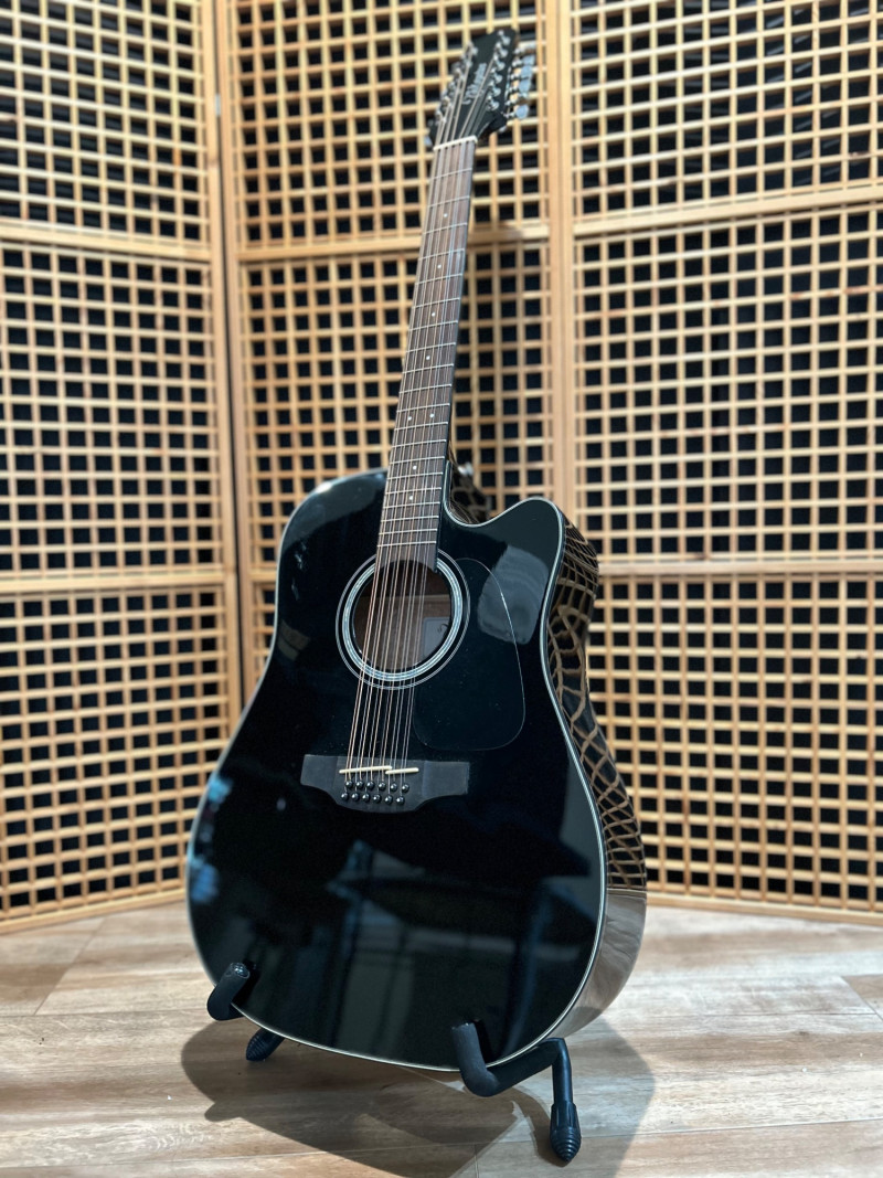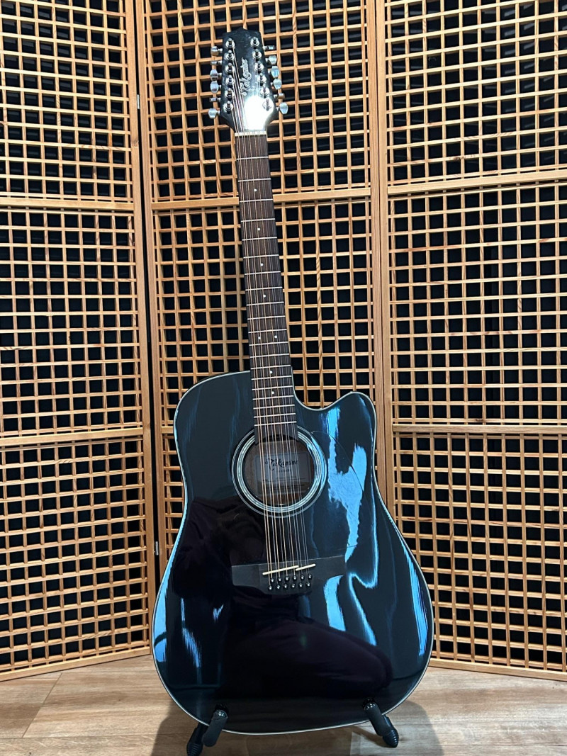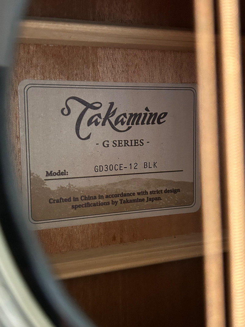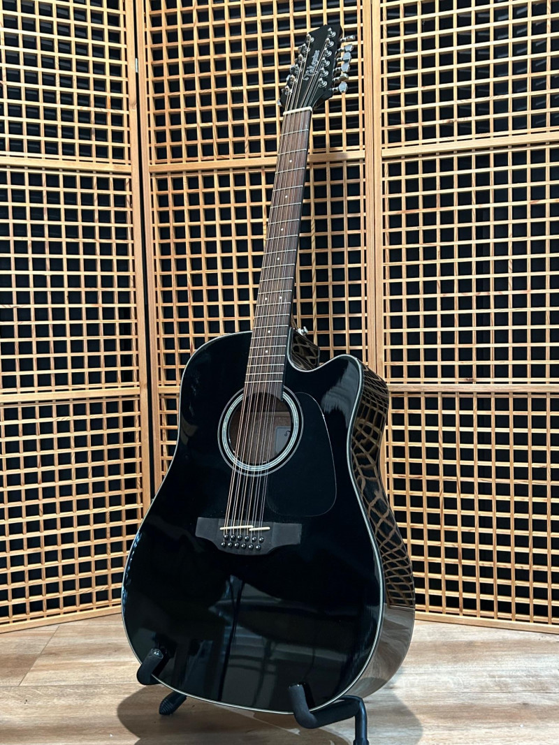 Designed to deliver the lush, ringing sound only a 12-string can provide, this Takamine features a dreadnought cutaway body for full projection and easy access to upper frets. The onboard Takamine TP-4TD preamp offers a 3-band EQ (Bass, Middle, Treble), built-in tuner, and gain control, making it gig-ready right out of the case. The high-gloss black finish gives it a bold, professional look that stands out under stage lights. Crafted in China to strict Takamine Japan specifications, this instrument reflects the brand’s reputation for playability, durability, and consistent tone—an excellent choice for performers, recording artists, or collectors seeking a dependable 12-string acoustic-electric. Brand: Takamine Series: G-Series Model: GD30CE-12 BLK Type: 12-String Acoustic-Electric Guitar Body Style: Dreadnought with Cutaway Finish: Gloss Black Electronics: Takamine TP-4TD Preamp 3-Band EQ (Bass / Middle / Treble) Built-in Chromatic Tuner Gain Control Low Battery Indicator Headstock: Takamine logo, chrome tuning machines (12-string configuration) Construction: Crafted in China in accordance with Takamine Japan design specificationsItem Details: