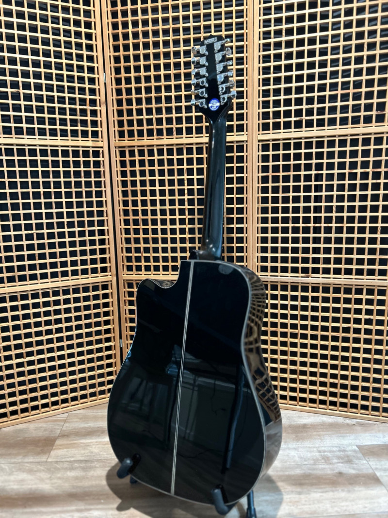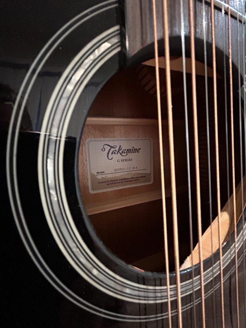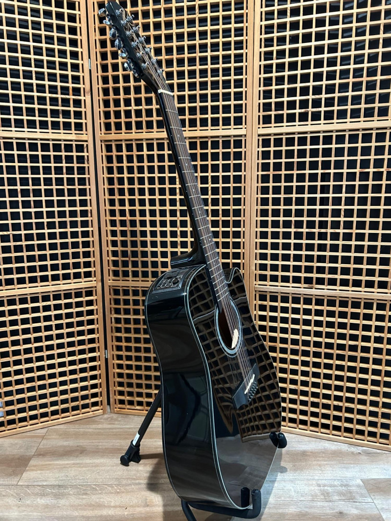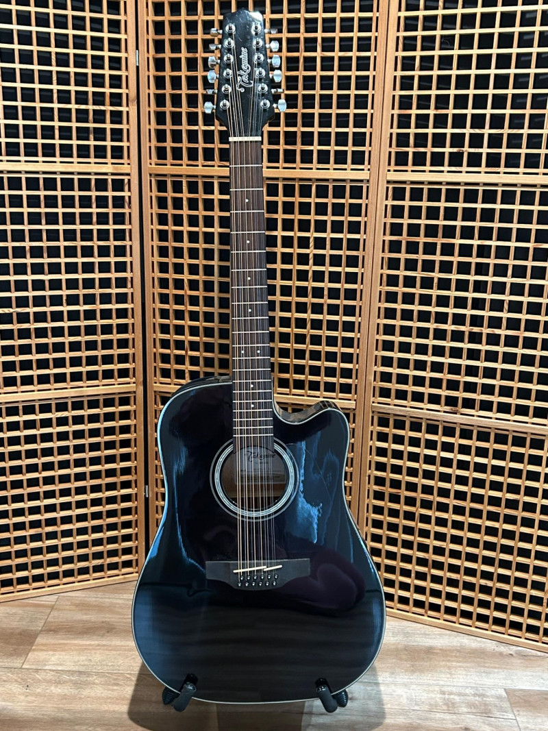 Designed to deliver the lush, ringing sound only a 12-string can provide, this Takamine features a dreadnought cutaway body for full projection and easy access to upper frets. The onboard Takamine TP-4TD preamp offers a 3-band EQ (Bass, Middle, Treble), built-in tuner, and gain control, making it gig-ready right out of the case. The high-gloss black finish gives it a bold, professional look that stands out under stage lights. Crafted in China to strict Takamine Japan specifications, this instrument reflects the brand’s reputation for playability, durability, and consistent tone—an excellent choice for performers, recording artists, or collectors seeking a dependable 12-string acoustic-electric. Brand: Takamine Series: G-Series Model: GD30CE-12 BLK Type: 12-String Acoustic-Electric Guitar Body Style: Dreadnought with Cutaway Finish: Gloss Black Electronics: Takamine TP-4TD Preamp 3-Band EQ (Bass / Middle / Treble) Built-in Chromatic Tuner Gain Control Low Battery Indicator Headstock: Takamine logo, chrome tuning machines (12-string configuration) Construction: Crafted in China in accordance with Takamine Japan design specificationsItem Details: