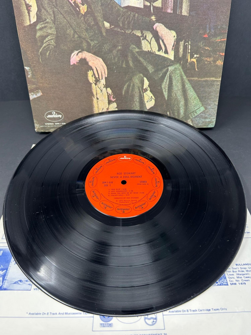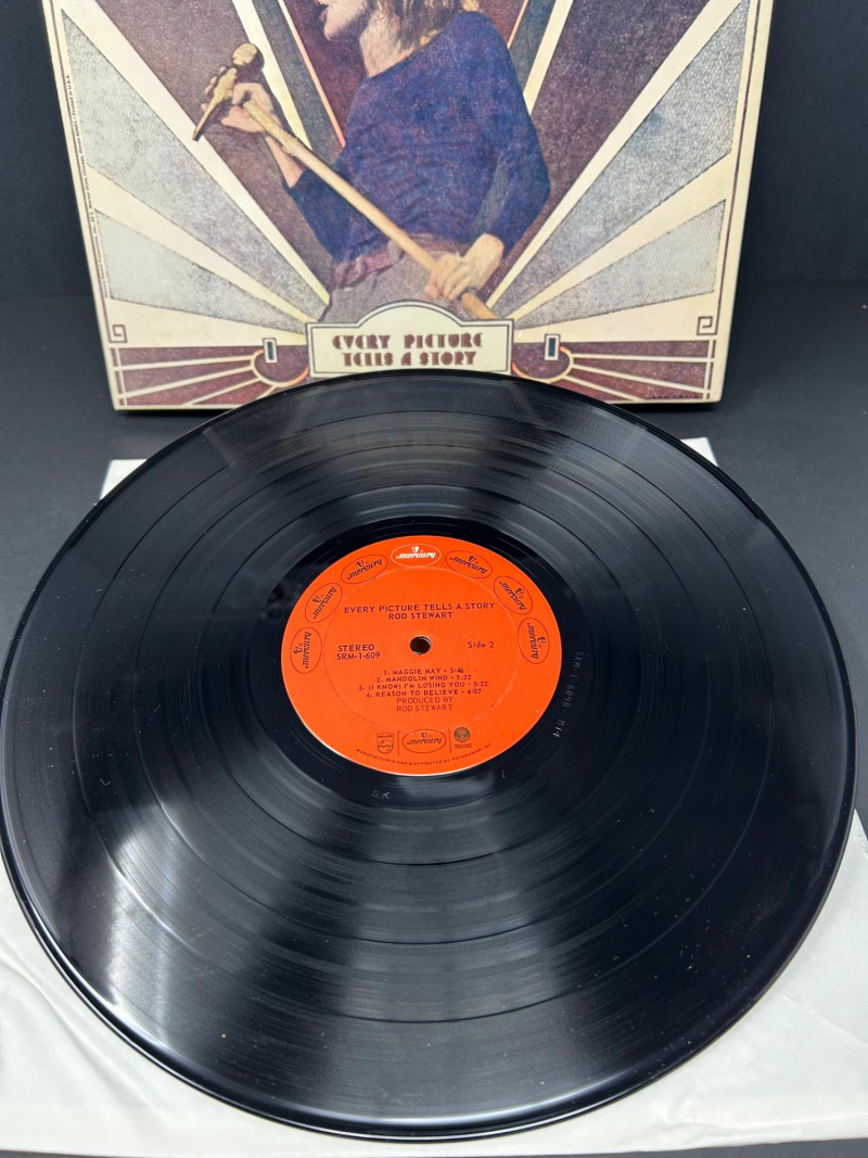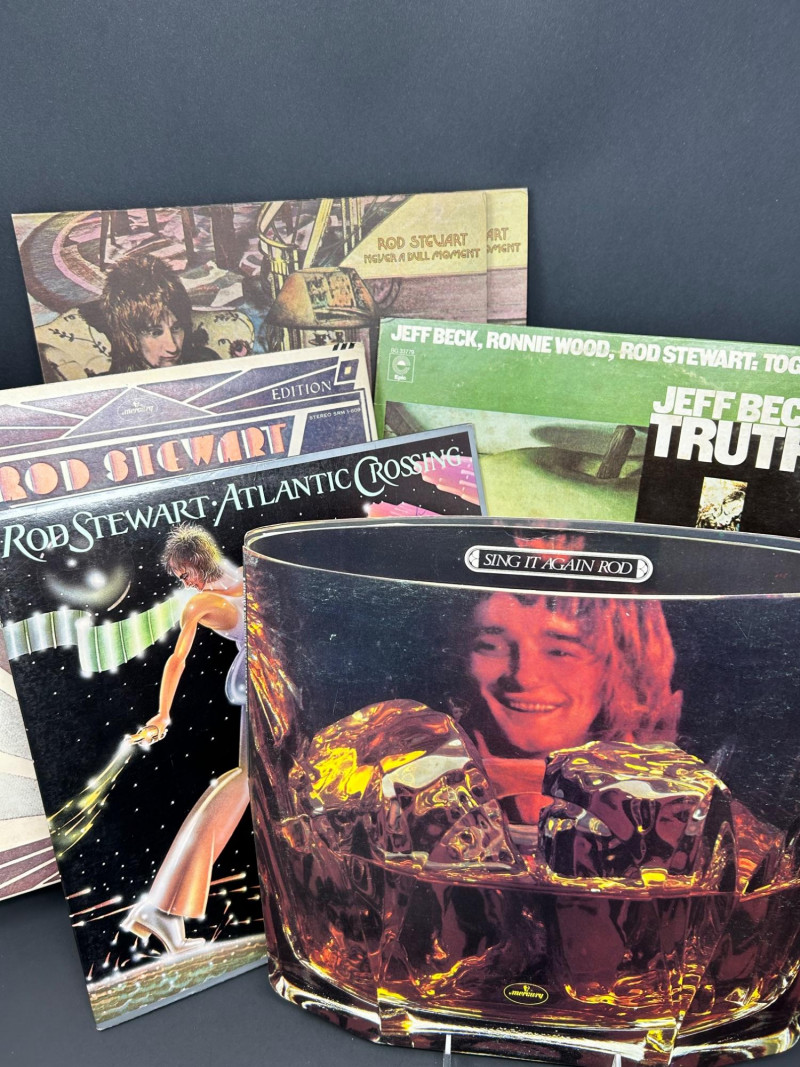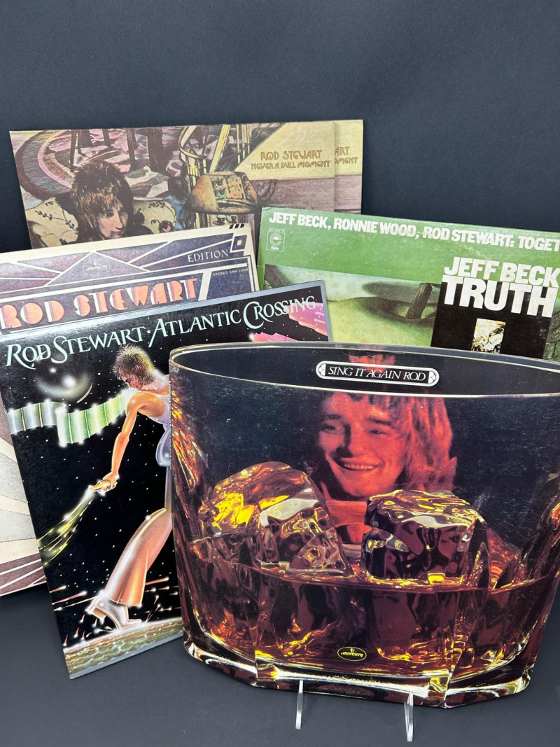 This group brings together original pressings on Mercury, Warner Bros., and Epic Records, featuring bold period artwork, gatefold sleeves, and original inserts including posters and photo booklets. Together, the albums capture Rod Stewart’s most influential era—blending folk, blues, and hard rock—and his historic association with Jeff Beck and Ronnie Wood.Item Details: