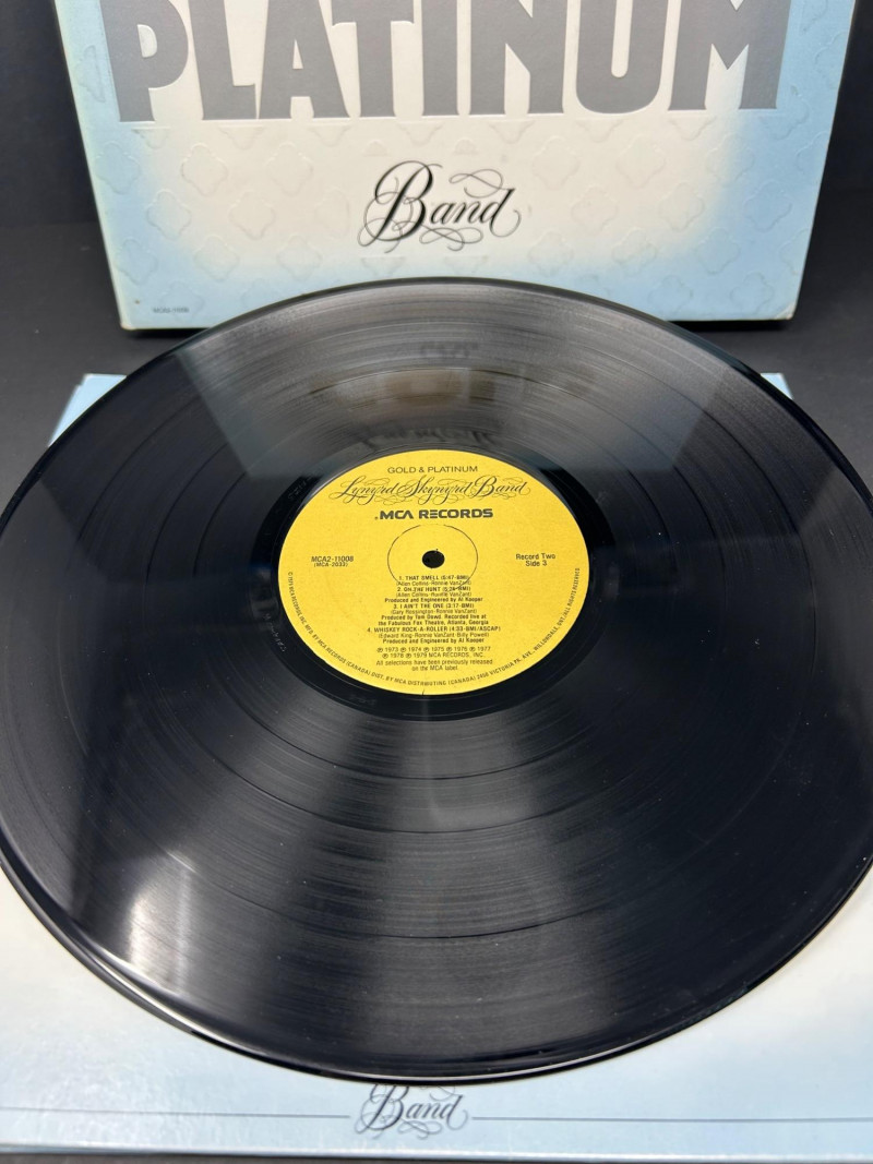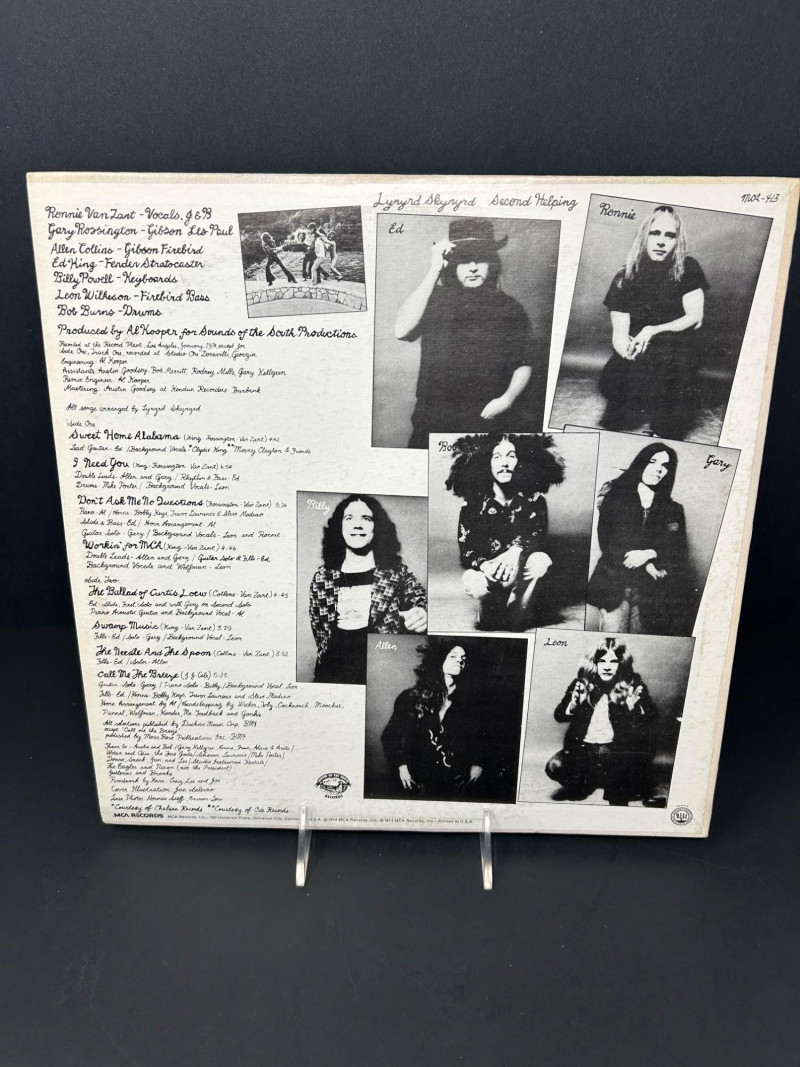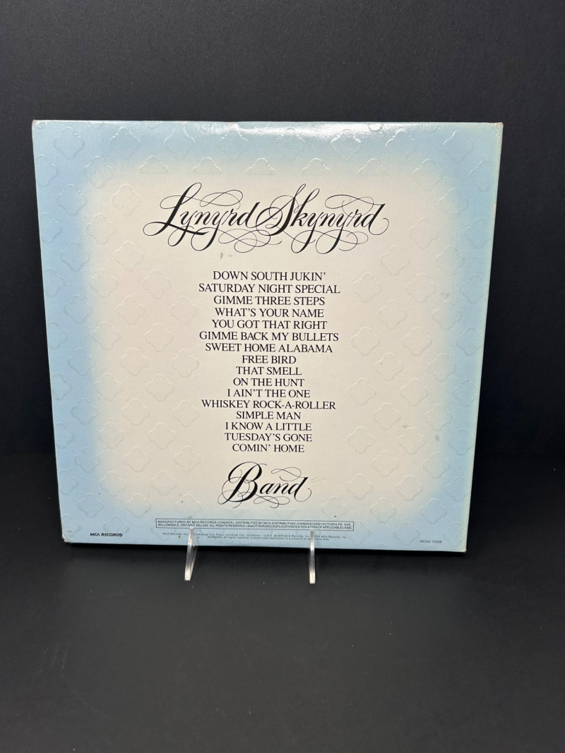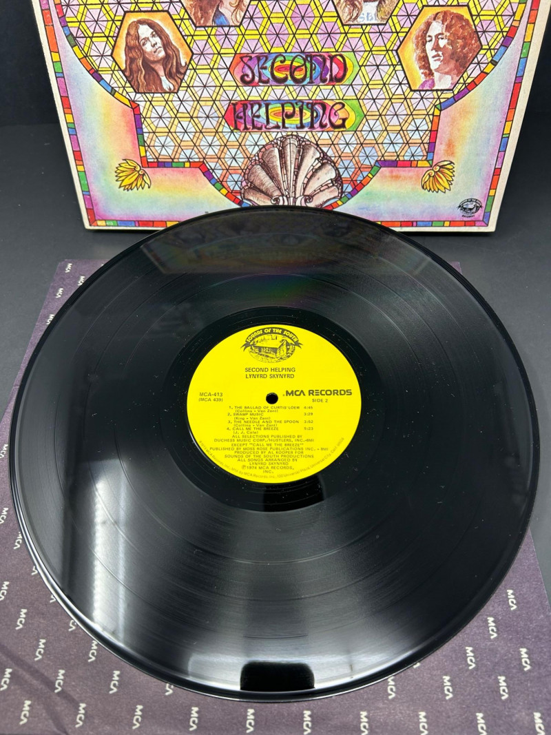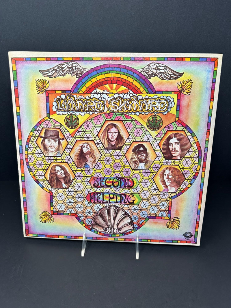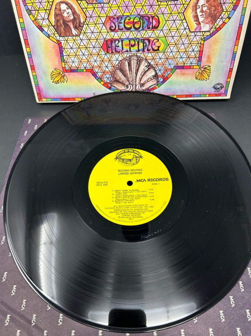 Offered is a vinyl LP lot from Southern rock legends Lynyrd Skynyrd, featuring one of their most iconic studio albums alongside their essential hits compilation. This lot includes Second Helping (1974), the breakthrough album that cemented the band’s legacy, and Gold & Platinum, a double-LP compilation spanning their classic era. Both are original MCA Records releases, with vinyl sides verified from the provided photos. Year: 1974 Label: MCA Records Catalog Number: MCA-413 Format: Vinyl LP Jacket: Original single sleeve Vinyl Sides Side 1 Side 2 Year: 1975 Label: MCA Records Catalog Number: MCA2-11008 Format: 2 × Vinyl LP Jacket: Original gatefold sleeve Inner Sleeves: Original printed lyric inners Vinyl Sides Record One: Side 1 · Side 2 Record Two: Side 3 · Side 4Item Details: