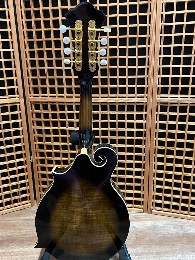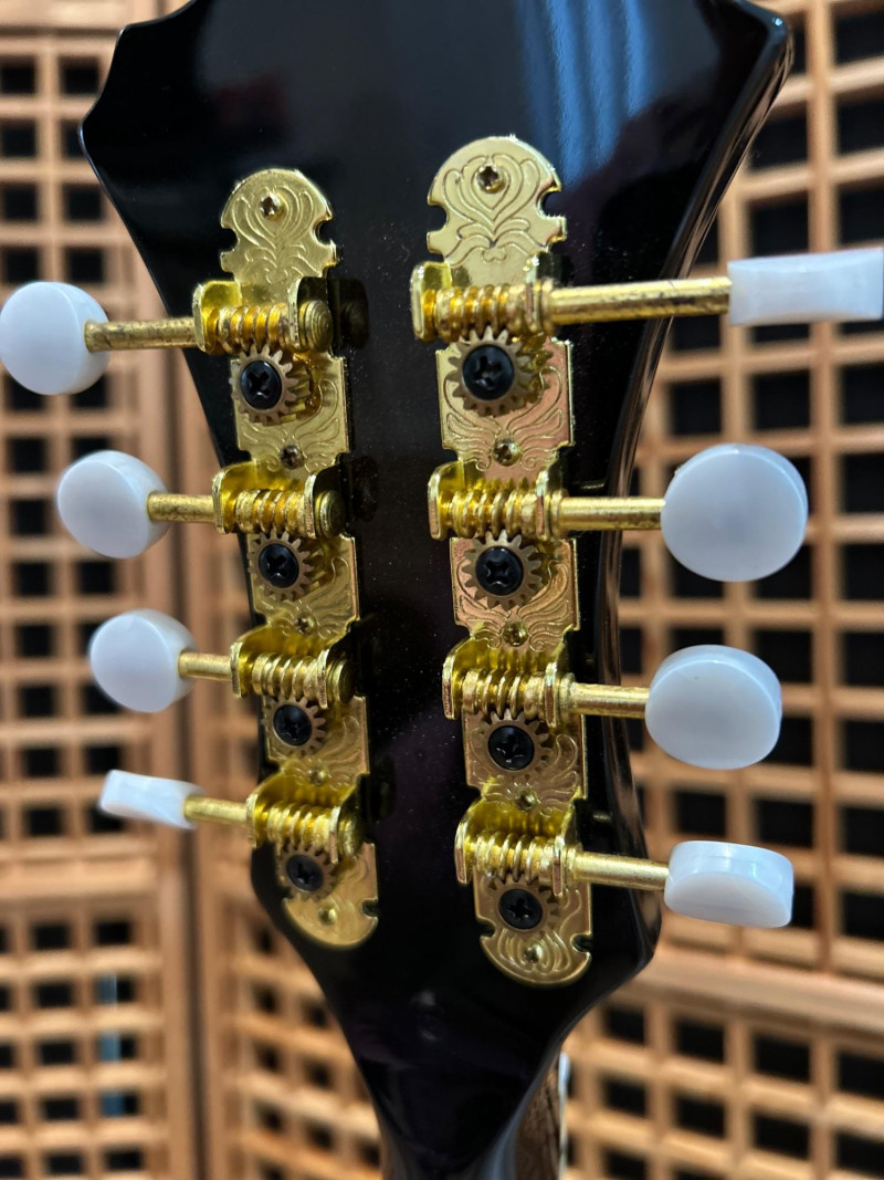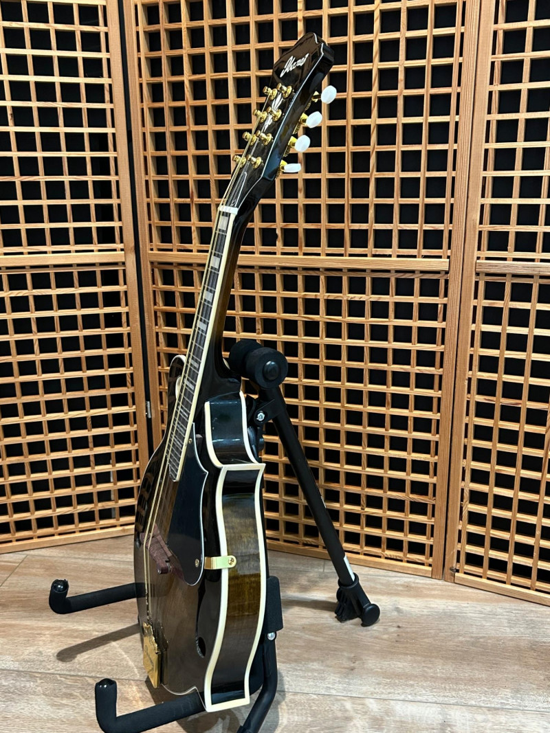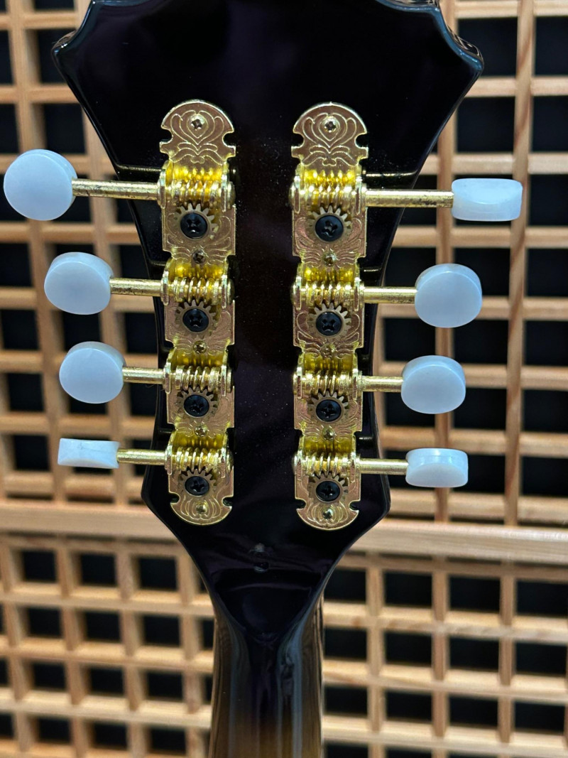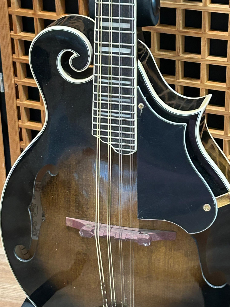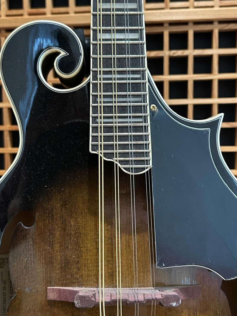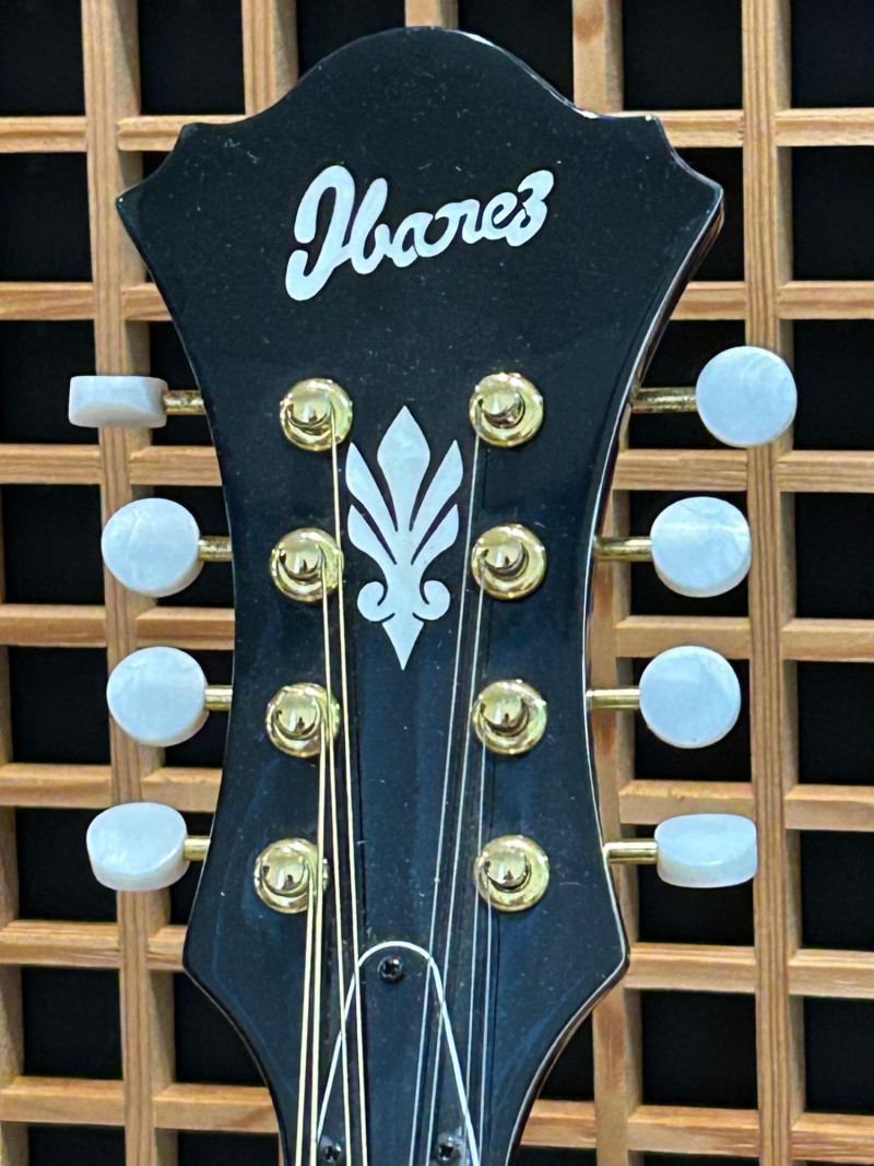 Offered is an Ibanez F-style mandolin, model M522S-DVS, finished in a dark violin sunburst. The instrument features classic F-style scroll construction, elegant binding, and gold-tone hardware. The Ibanez logo is present on both the headstock and tailpiece, and the interior label clearly shows the model designation and serial number. This mandolin is accompanied by a soft padded gig bag and multiple accessories, including leather and woven strapsand a metal support/stand attachment, all shown in the photos. Overall presentation is attractive and complete, making this a solid option for players or collectors looking for a ready-to-use mandolin setup. Brand: Ibanez Model: M522S-DVS Instrument Type: F-Style Mandolin Finish: Dark Violin Sunburst Strings: 8-string configuration (standard mandolin setup) Headstock: Ibanez logo, decorative inlay, gold-tone tuners with white buttons Tailpiece: Ibanez branded, gold-tone Body Features: Scroll body, f-holes, bound edges Country of Manufacture: Made in China (per interior label) Padded soft gig bag Multiple straps (leather and woven) Metal stand/support accessoryItem Details: