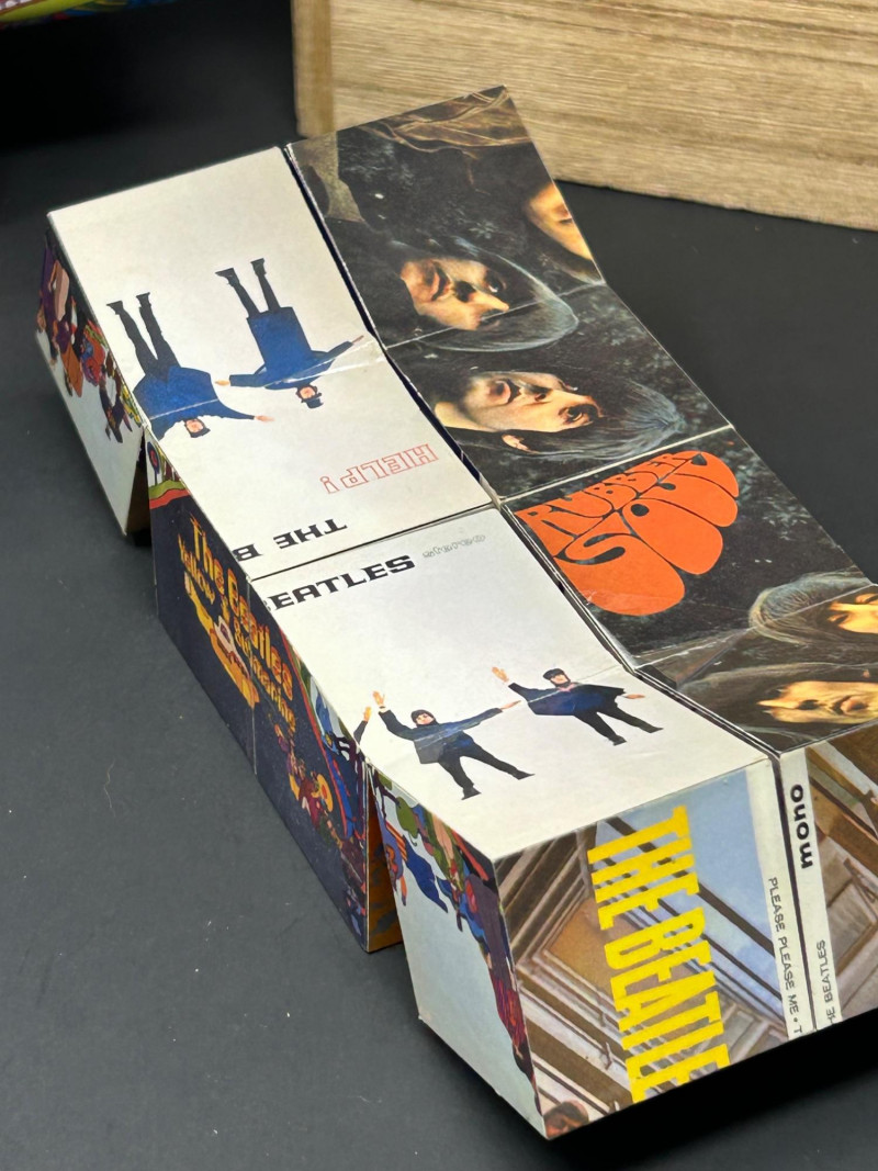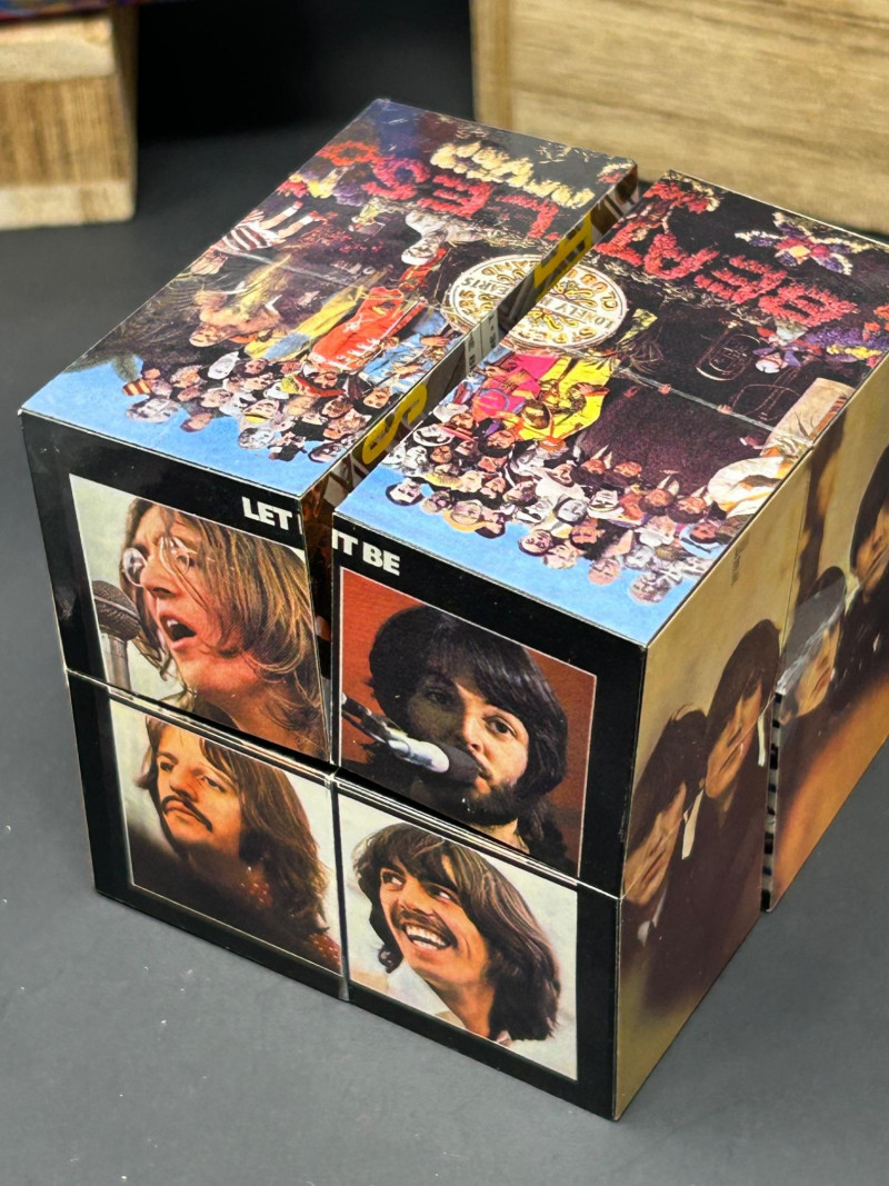 Multi-panel cube featuring classic album imagery.