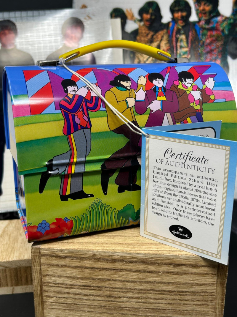 Yellow Submarine artwork; metal construction; includes Certificate of Authenticity (design scaled to ~70% of 1950s–70s originals).