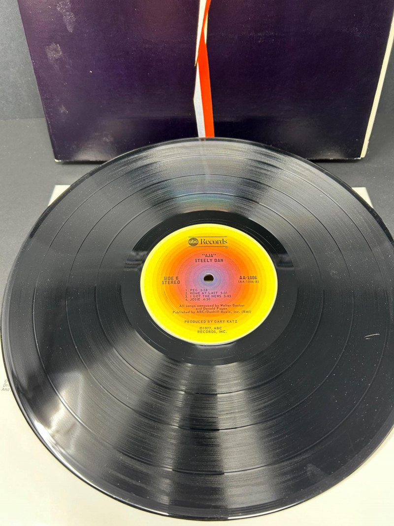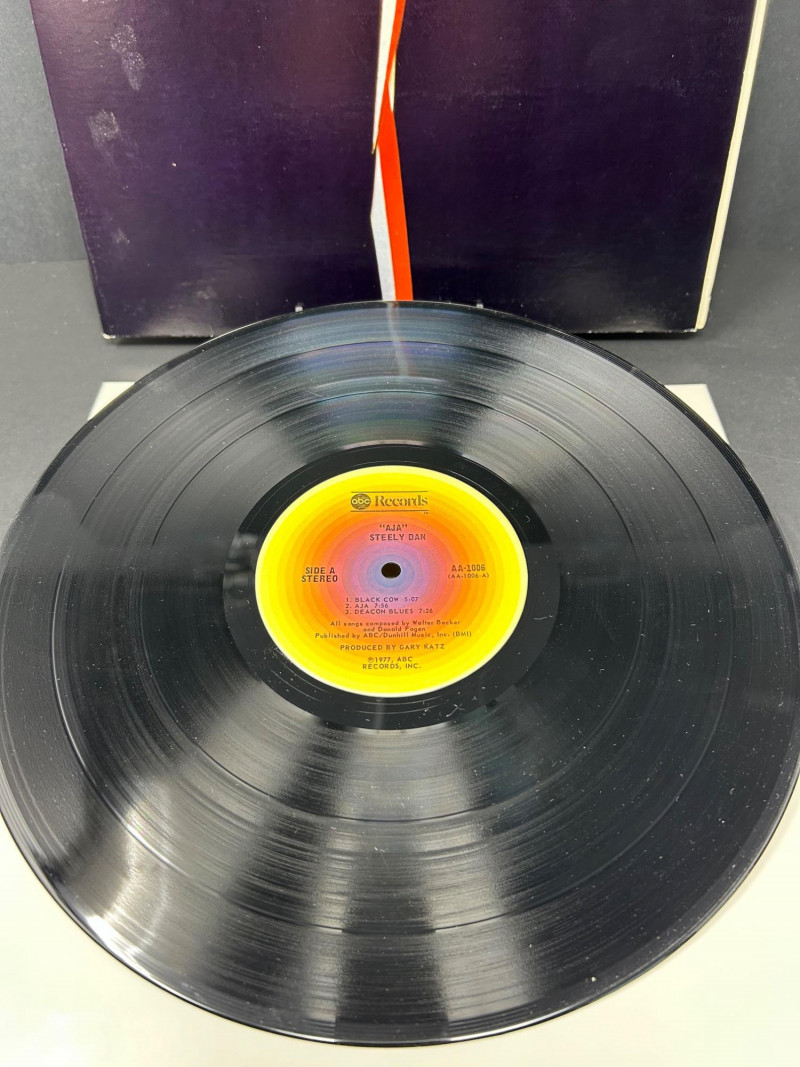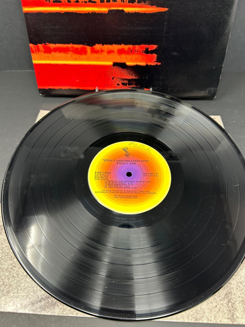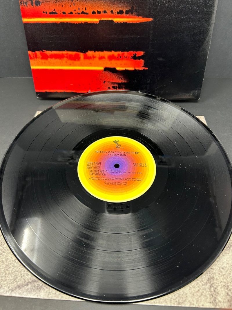 A substantial Steely Dan vinyl collection spanning the band’s classic 1970s output. This lot includes five original studio albums plus the 2-LP Greatest Hits compilation, covering Steely Dan’s evolution from early jazz-rock to their polished late-’70s sound. All records feature correct period labels (ABC rainbow, ABC gray/black, MCA sky label), with Side A / B / C / D labels clearly shown in the photos, confirming completeness across the set. An excellent opportunity for collectors, audiophiles, or fans seeking a core Steely Dan vinyl run in original pressings. Can't Buy a Thrill — ABC Records, 1972 Pretzel Logic — ABC Records, 1974 Katy Lied — MCA Records, 1975 The Royal Scam — ABC Records, 1976 Aja — ABC Records, 1977 Greatest Hits — ABC Records, 1978 (2×LP) Labels: ABC Records rainbow labels; ABC Records gray/black labels; MCA Records sky/rainbow label (Katy Lied) Sides confirmed: Single LPs: Side A & Side B Greatest Hits: Side 1 / Side 2 / Side 3 / Side 4 Format: LP, Stereo throughout Producer: Gary Katz (as credited)Set Includes: