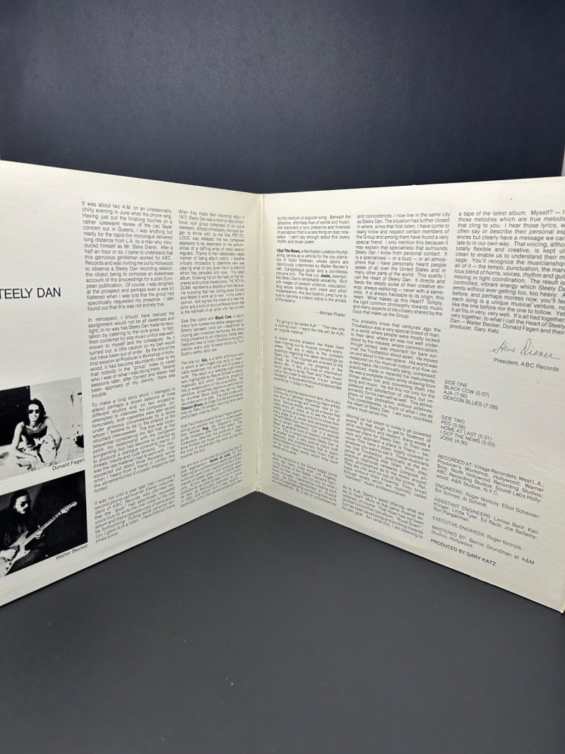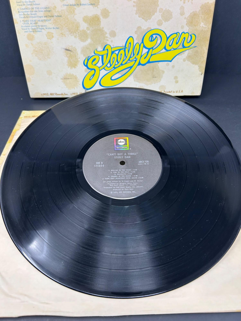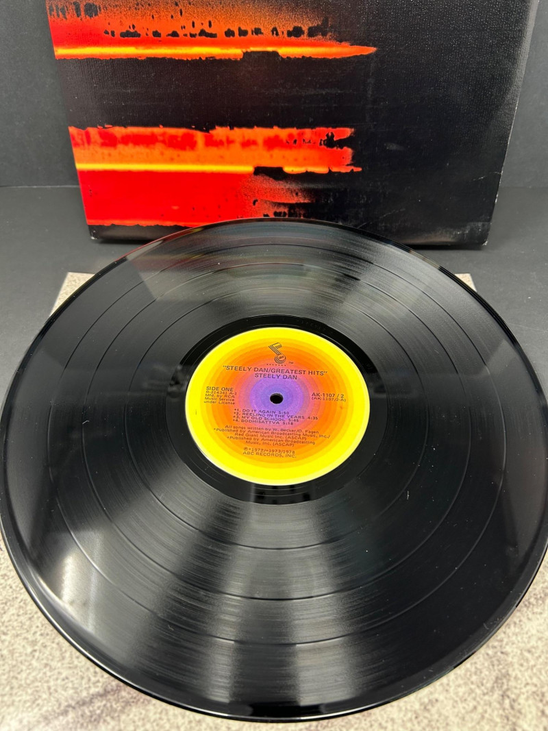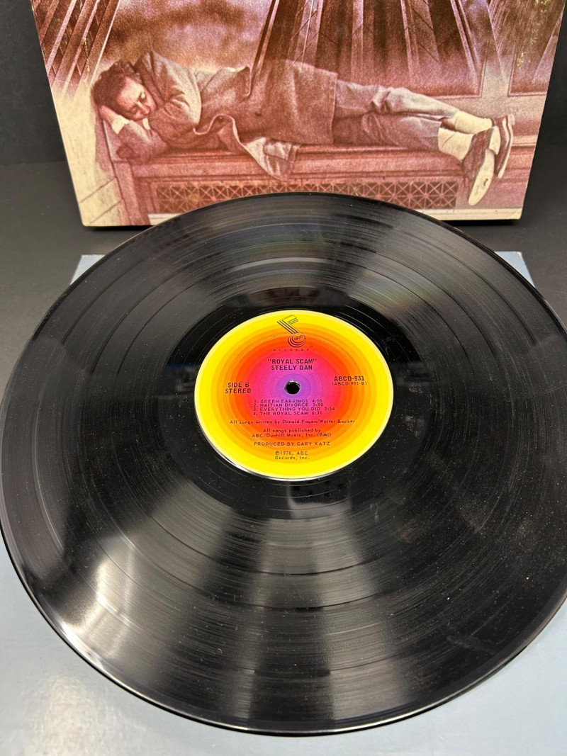 A substantial Steely Dan vinyl collection spanning the band’s classic 1970s output. This lot includes five original studio albums plus the 2-LP Greatest Hits compilation, covering Steely Dan’s evolution from early jazz-rock to their polished late-’70s sound. All records feature correct period labels (ABC rainbow, ABC gray/black, MCA sky label), with Side A / B / C / D labels clearly shown in the photos, confirming completeness across the set. An excellent opportunity for collectors, audiophiles, or fans seeking a core Steely Dan vinyl run in original pressings. Can't Buy a Thrill — ABC Records, 1972 Pretzel Logic — ABC Records, 1974 Katy Lied — MCA Records, 1975 The Royal Scam — ABC Records, 1976 Aja — ABC Records, 1977 Greatest Hits — ABC Records, 1978 (2×LP) Labels: ABC Records rainbow labels; ABC Records gray/black labels; MCA Records sky/rainbow label (Katy Lied) Sides confirmed: Single LPs: Side A & Side B Greatest Hits: Side 1 / Side 2 / Side 3 / Side 4 Format: LP, Stereo throughout Producer: Gary Katz (as credited)Set Includes: