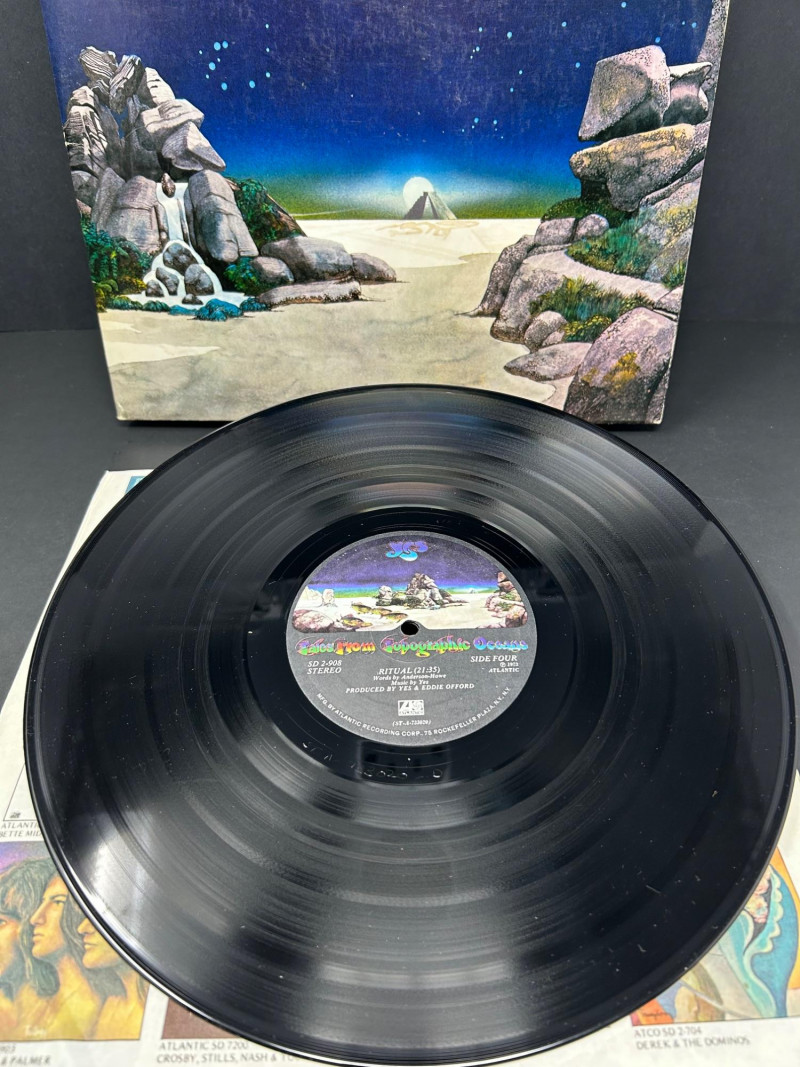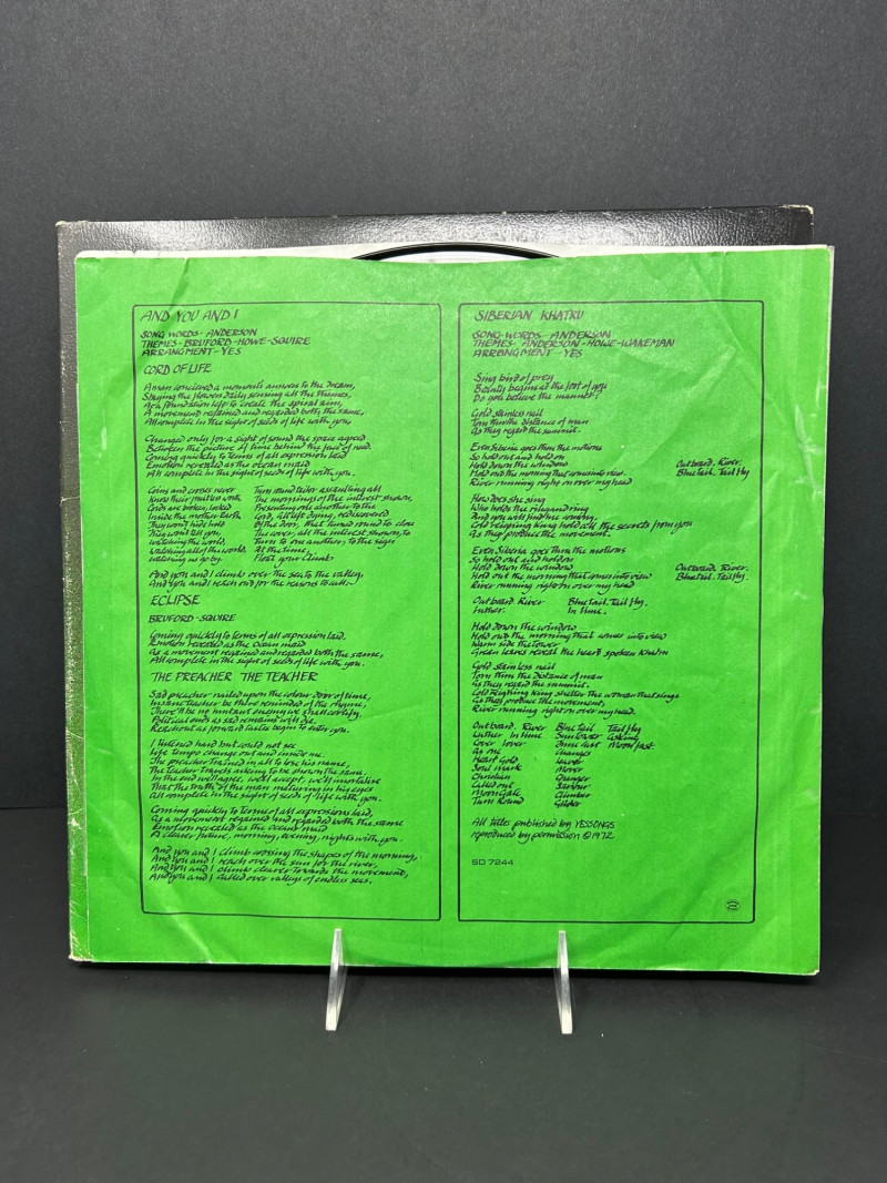 A collector’s set of two defining progressive rock albumsfrom Yes. Both Close to the Edgeand Tales from Topographic Oceansare original Atlantic pressings, featuring elaborate gatefold packaging and surreal artwork by Roger Dean. These albums capture the band’s peak creativity and are essential for fans of classic rock and vinyl collectors. Artist:Yes Label:Atlantic Records Format:2x Vinyl LPs (one LP per album) Edition:Original pressings with gatefold sleeves & printed inner sleeves Cover Art:Surreal fantasy landscapes by Roger Dean Band Lineup:Jon Anderson, Steve Howe, Chris Squire, Rick Wakeman, Bill Bruford / Alan White Condition:Vinyl visually clean; covers show light shelf wear; lyric sleeves intact Extras:Includes original lyric sleeves and full gatefold artwork Side 1: Close to the Edge(The Solid Time of Change / Total Mass Retain / I Get Up I Get Down / Seasons of Man) Side 2: And You And I(Cord of Life / Eclipse / The Preacher the Teacher / Apocalypse) Siberian Khatru (Double LP – 4 sides) Side 1: The Revealing Science of God (Dance of the Dawn) Side 2: The Remembering (High the Memory) Side 3: The Ancient (Giants Under the Sun) Side 4: Ritual (Nous sommes du soleil)Item Details: