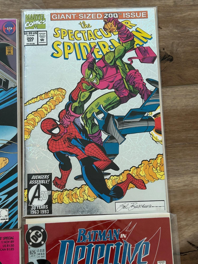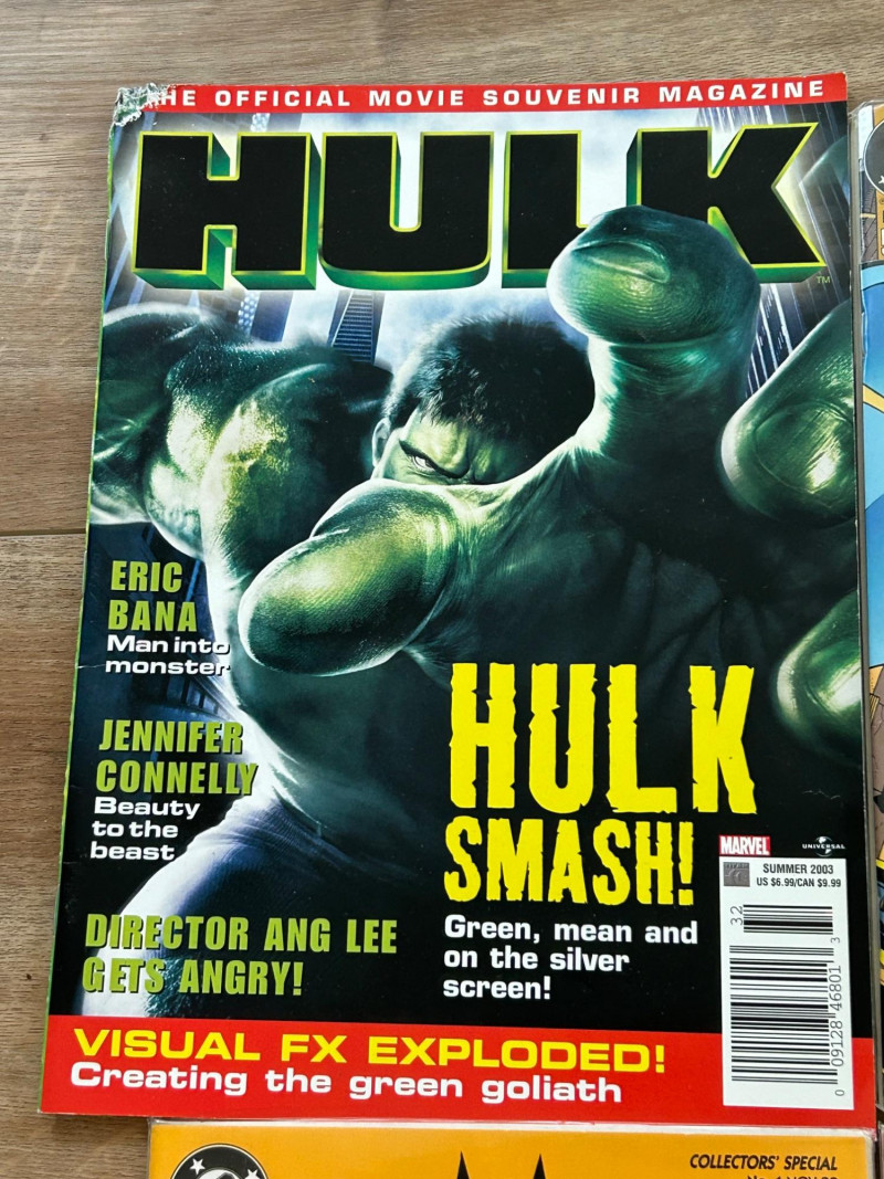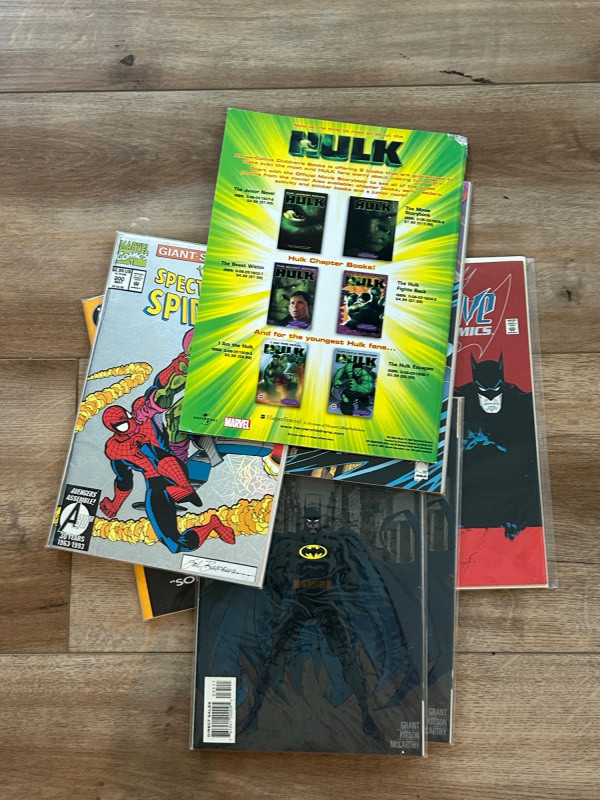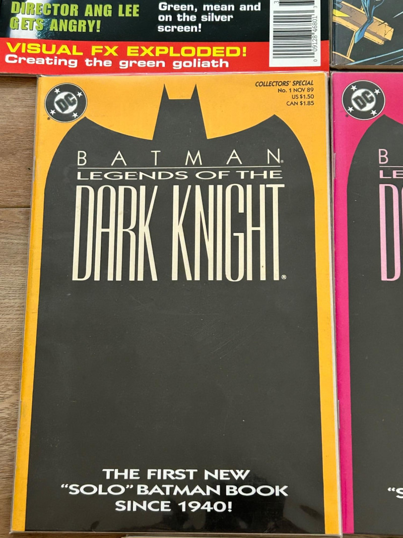 A striking mixed lot of DC and Marvel collectibles featuring iconic Batman storylines, a giant-size Spider-Man issue, and a Hulk movie souvenir magazine. This group highlights visually bold covers and key eras—from the gritty Knightfall period to anniversary and collectors’ specials—making it an excellent addition for comic collectors, Batman fans, or pop-culture enthusiasts. The lot includes multiple Batman titles such as Batman: Legends of the Dark Knight (Collectors’ Specials), Batman(notably issue #500 from Knightfall), Detective Comics, and Batman: Shadow of the Bat. Marvel highlights include The Spectacular Spider-Man (Giant-Size #200 anniversary issue) and an official Hulk magazine tied to the Ang Lee film era. Batman: Legends of the Dark Knight – Collectors’ Special editions (multiple color variants shown) Batman #500 – Knightfall era landmark issue Batman: Detective Comics – Classic 1990s cover artwork Batman: Shadow of the Bat – Dark, atmospheric Gotham styling The Spectacular Spider-Man – Giant-Size #200 (30th Anniversary era) Hulk – Official Movie Souvenir Magazine (2003) Publishers: DC Comics & Marvel Comics Era: Primarily 1990s with early-2000s material Format: Standard comics + one magazineSet Includes: