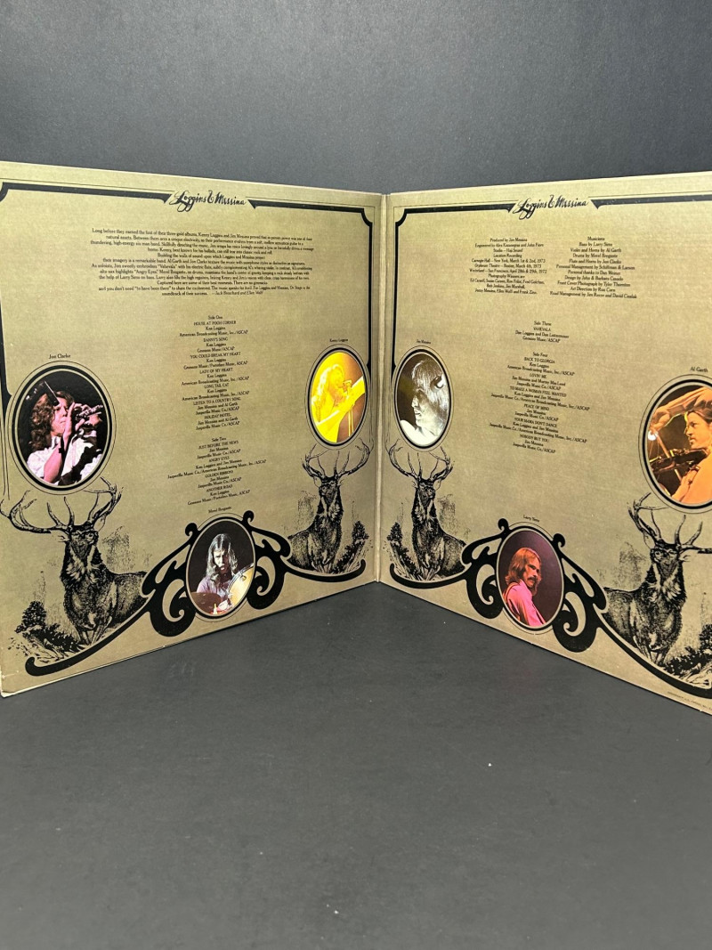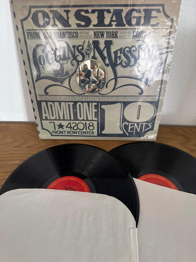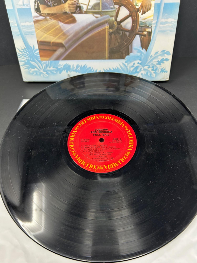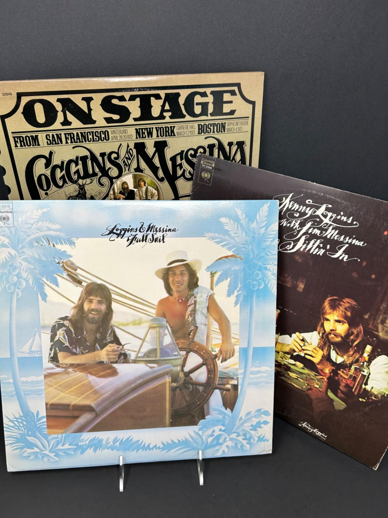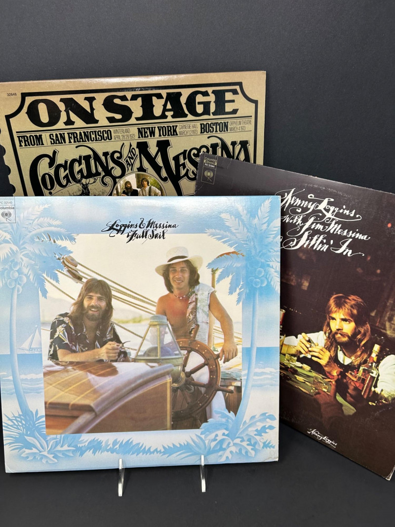 A vintage vinyl record lot featuring three classic albums from Loggins & Messina. This collection includes a promotional copy of Full Sail, the live double album On Stage, and their debut Sittin’ In. Each record is an original Columbia red-label pressing with distinctive cover art. A collector’s set that highlights the duo’s blend of folk, rock, and country influences. Artists: Kenny Loggins & Jim Messina Label: Columbia Records Format: 12" Vinyl LPs Full Sail includes “For Promotion Only” CBS stamp. 2 red-label discs Side 1 / Side 2 clearly marked on labels Nautical-themed cover featuring Loggins & Messina aboard a sailboat Promotional copy with CBS ownership stamp 3 red-label discs Side 1 / Side 2 / Side 3 / Side 4 live recordings Vintage concert ticket-style cover design Recorded at Winterland (San Francisco), Carnegie Hall (New York), and Orpheum Theatre (Boston) 2 red-label discs Side 1 / Side 2 marked on labels Cover features Loggins & Messina in a casual card-playing scene Gatefold includes sepia-toned band photos, credits, and liner notesDetails: