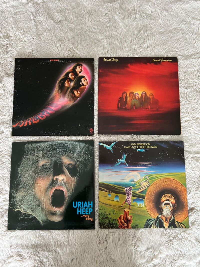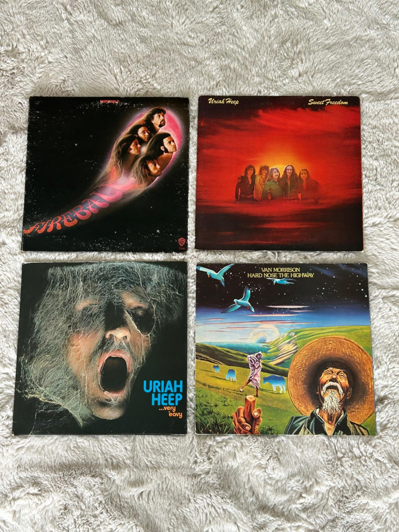 A curated four-album classic rock vinyl group featuring influential releases by Deep Purple, Uriah Heep, and Van Morrison. This selection reflects the late 1960s–early 1970s era of hard rock, progressive rock, and singer-songwriter traditions, presented in original LP format with period labels and gatefold sleeves where applicable. Deep Purple – Fireball Uriah Heep – …Very ’Eavy …Very ’Umble Uriah Heep – Sweet Freedom Van Morrison – Hard Nose the HighwayAlbum Details: