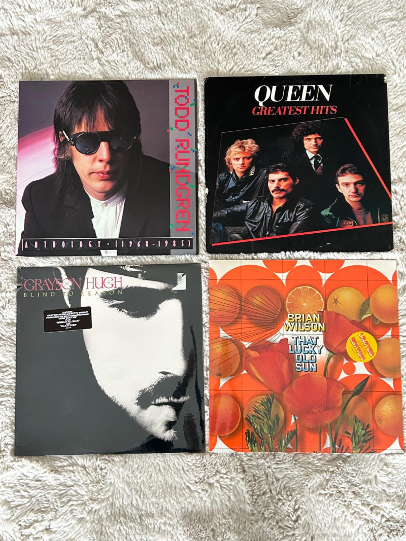 A curated vinyl LP collection featuring four well-known artists spanning classic rock, pop rock, and adult contemporary. This group includes Queen’s iconic Greatest Hits, Todd Rundgren’s expansive double-LP Anthology (1968–1985), Brian Wilson’s acclaimed solo album That Lucky Old Sun, and Grayson Hugh’s debut release Blind to Reason. A strong, well-balanced lot ideal for collectors or listeners looking to expand a quality vinyl library with recognizable and influential titles. Queen – Greatest Hits Todd Rundgren – Anthology (1968–1985) Brian Wilson – That Lucky Old Sun Grayson Hugh – Blind to Reason Format: Vinyl LP RecordsAlbums Included:
