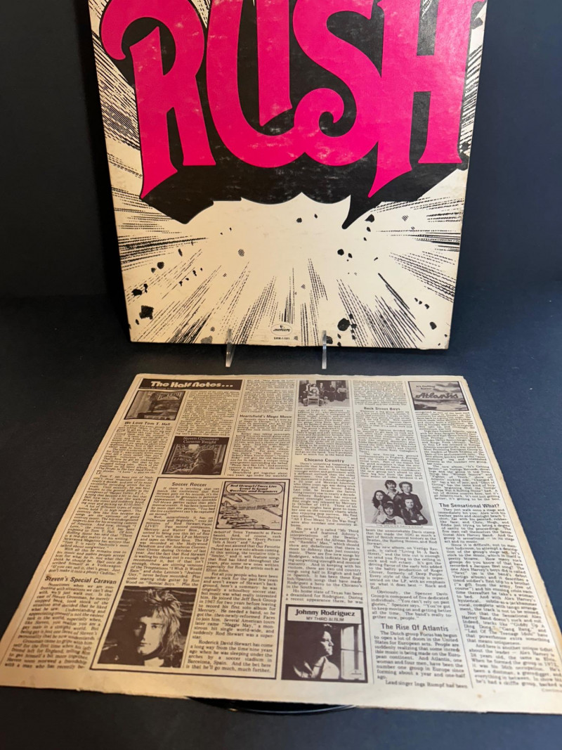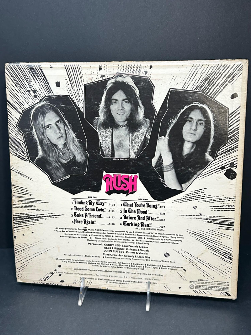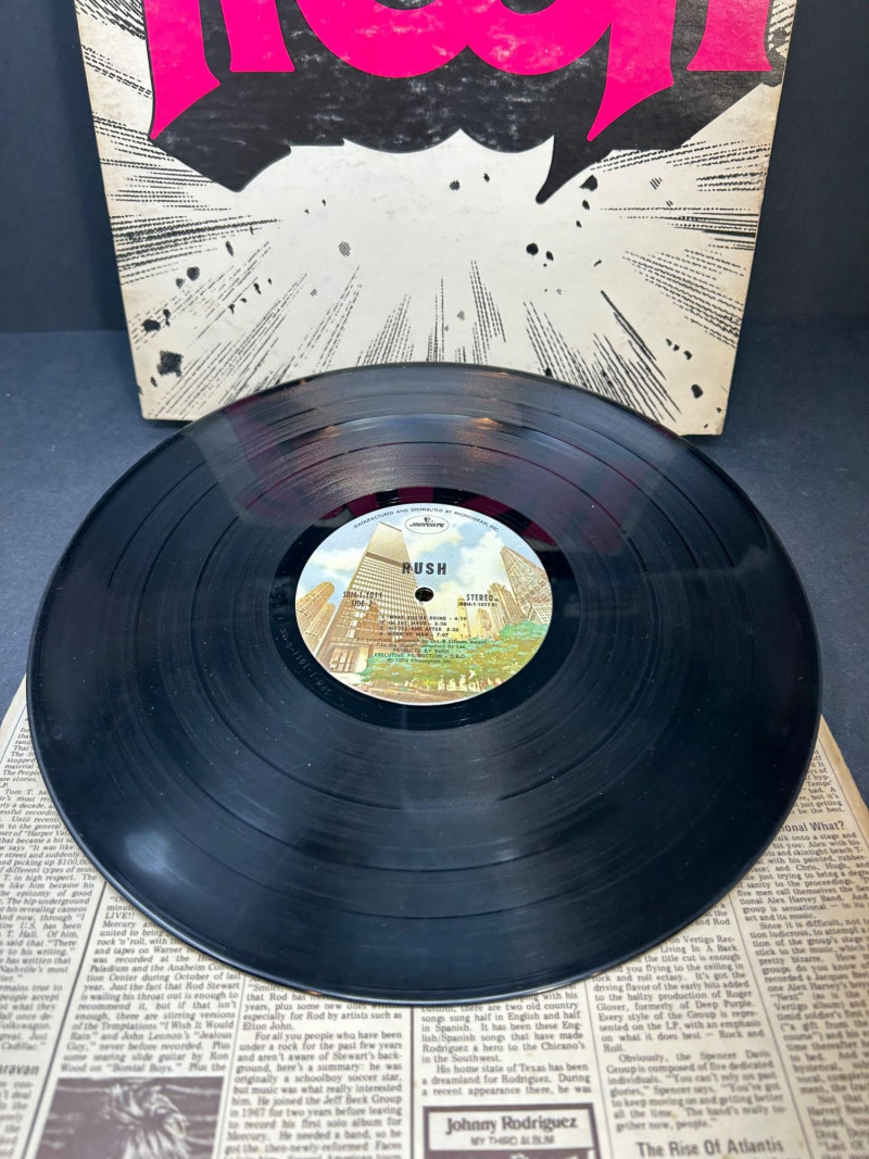 Up for auction is the iconic self-titled debut album by Rush, released in 1974 on Mercury Records. This LP captures the raw, blues-driven hard rock sound of early Rush, before their progressive era fully emerged. The album features the instantly recognizable bold pink RUSH logo on a dramatic starburst-style cover, with band portraits and liner notes on the back. A must-have cornerstone piece for Rush collectors and classic rock vinyl enthusiasts. Based on the provided photos, this is an original vintage pressing complete with its original sleeve and Mercury Records labels. Artist: Rush Album: Rush (Self-Titled) Year: 1974 Label: Mercury Records Format: 12" Vinyl LP Speed: 33⅓ RPM Country: US pressing Genre: Classic Rock / Hard Rock Original Rush vinyl LP Original album cover sleeve Single LP Side A Side BDetails:
