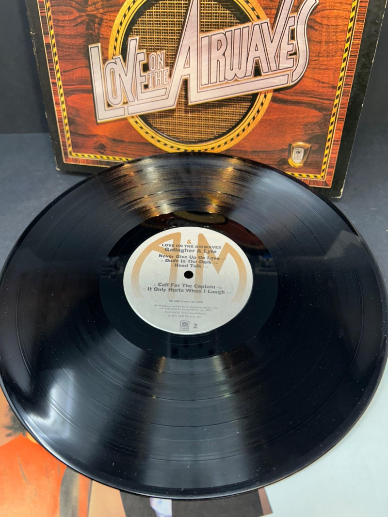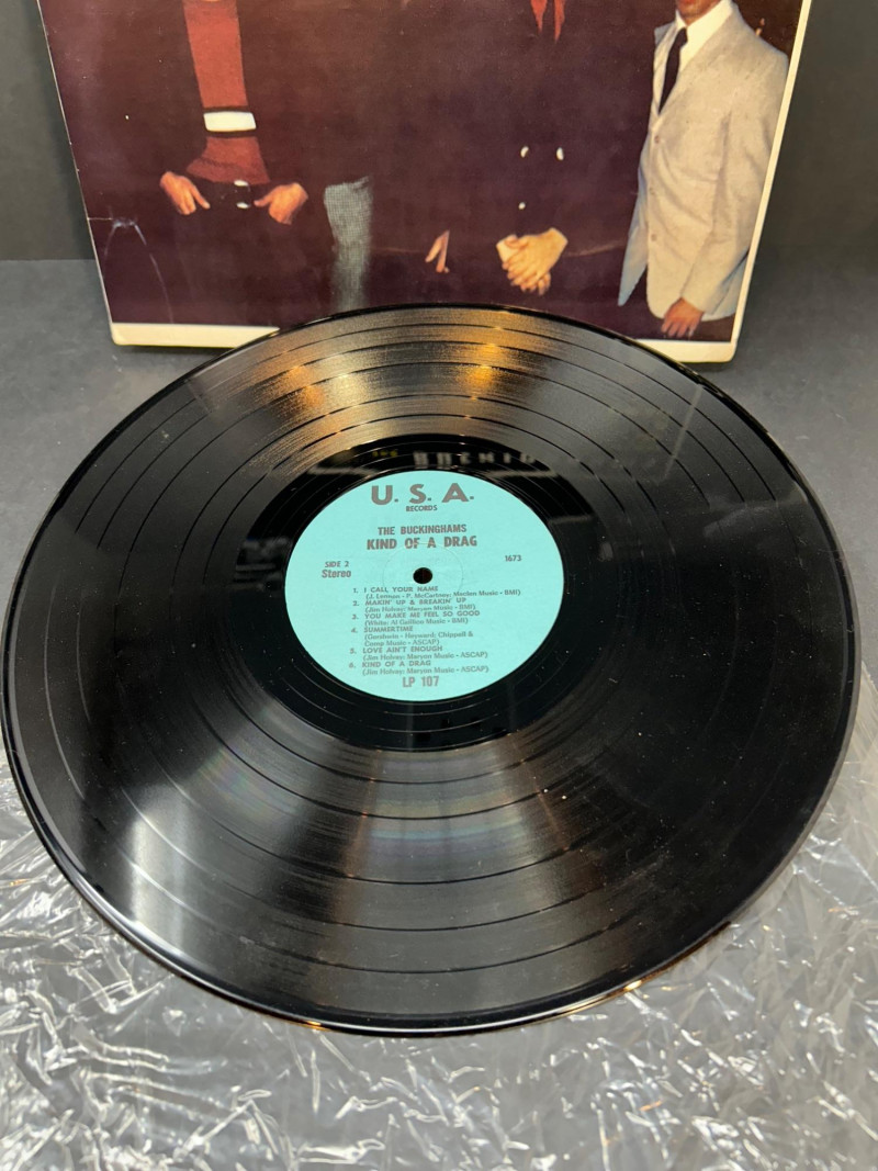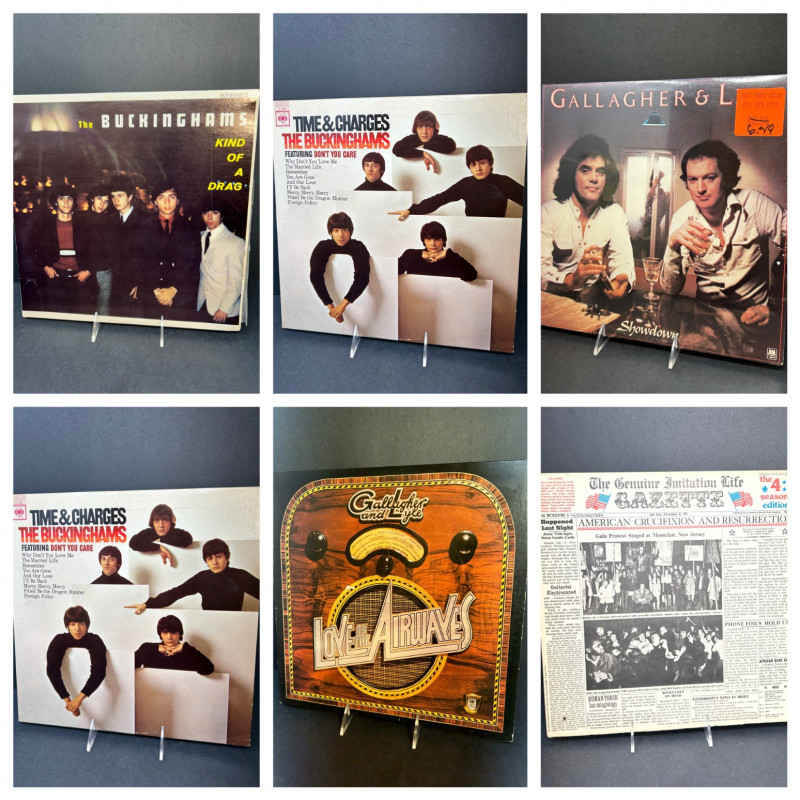 A vintage pop-rock vinyl collection featuring six LP albums from The Buckinghams and Gallagher & Lyle, spanning late-1960s American pop and 1970s soft-rock recordings. The Buckinghams titles include Kind of a Drag, Time & Charges (MONO pressing), and the distinctive newspaper-style concept album The Genuine Imitation Life Gazette. Gallagher & Lyle recordings from their A&M Records era include Love on the Airwaves, Breakaway, and Showdown. Records and sleeves show normal vintage wear consistent with age and handling. A solid collector and listening lot representing two recognizable pop-rock acts from the era. Format: Vinyl LP records The Buckinghams — Kind of a Drag The Buckinghams — Time & Charges (MONO) The Buckinghams — The Genuine Imitation Life Gazette Gallagher & Lyle — Love on the Airwaves Gallagher & Lyle — Breakaway Gallagher & Lyle — ShowdownDetails:
