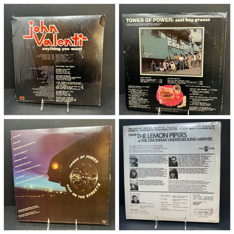 A vintage vinyl record collection featuring a mix of funk, rock, and pop recordings from the late-1960s through the 1970s. This lot includes multiple albums from Tower of Power along with psychedelic pop from The Lemon Pipers and a soulful pop release from John Valenti. Album covers show authentic vintage wear consistent with age, while the records themselves appear well-preserved with original labels and sleeves visible. A great addition for collectors of classic funk, psychedelic pop, and West Coast horn-driven soul. Details: Format: Vinyl LP records (33 RPM) Set Includes: The Lemon Pipers — Green Tambourine Tower of Power — Back on the Streets Tower of Power — East Bay Grease John Valenti — Anything You Want Record Format: