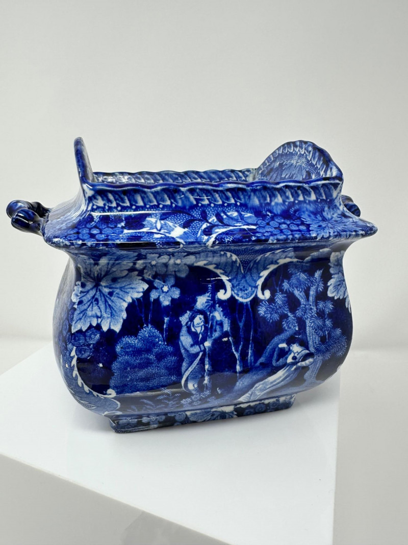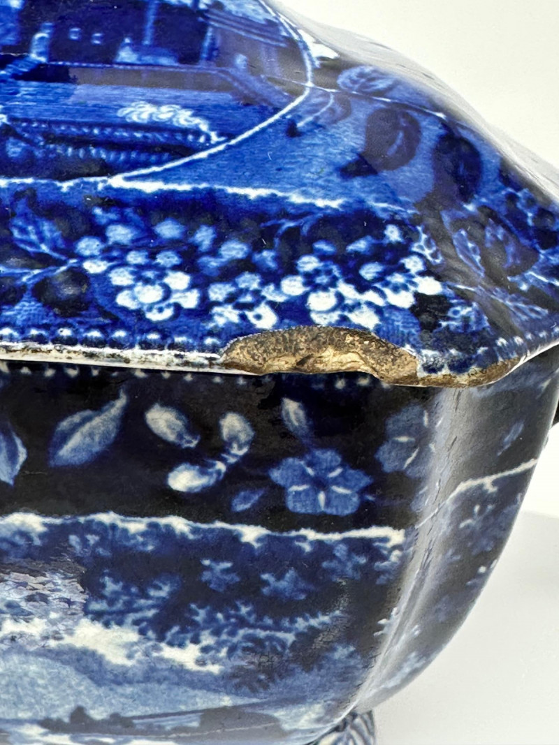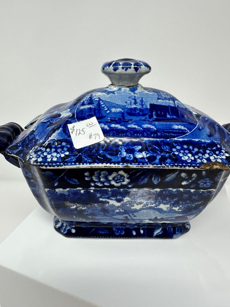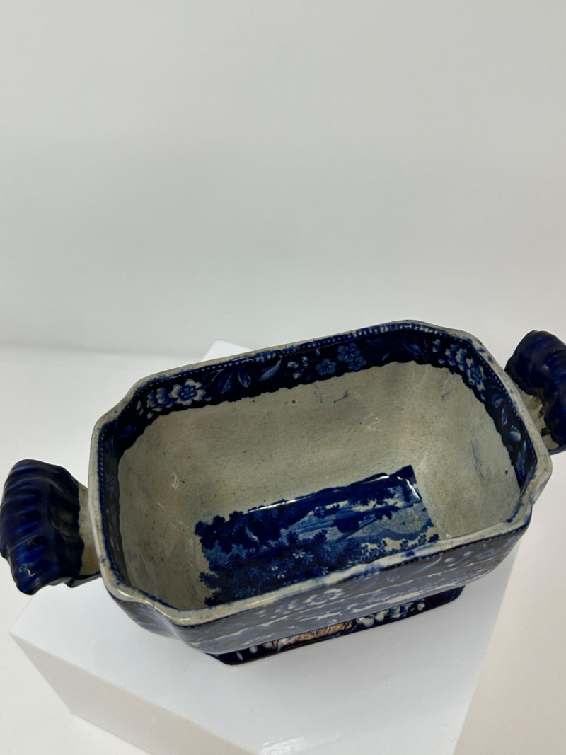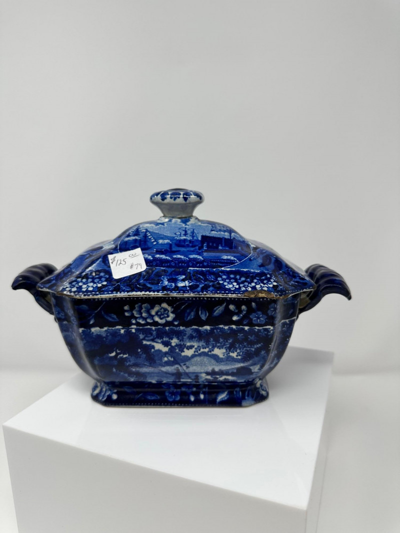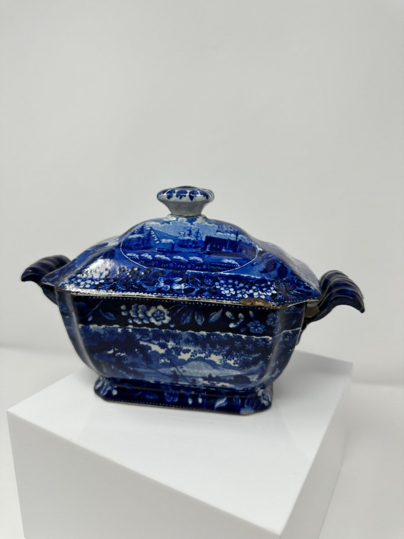 Lot # 15 - Staffordshire Flow Blue Sugar Bowl and Covered Tureen, 19th Cent.