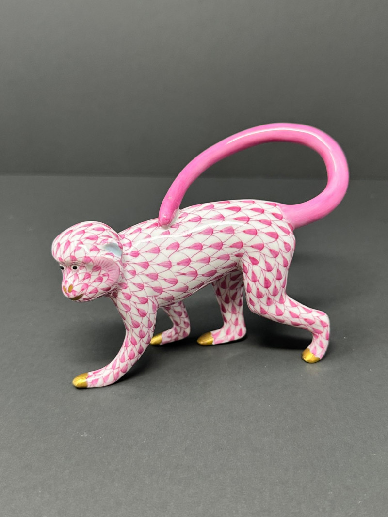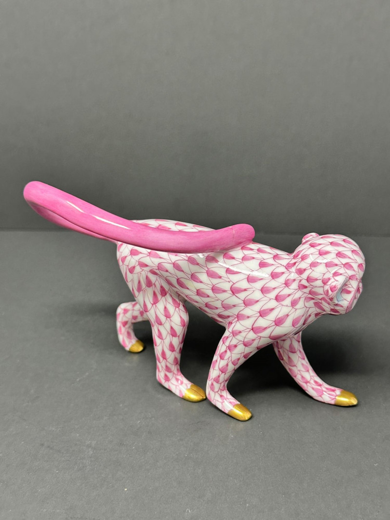 Lot # 109 - Herend Porcelain Monkey Figurine – Pink Fishnet Pattern-SEE DETAILS