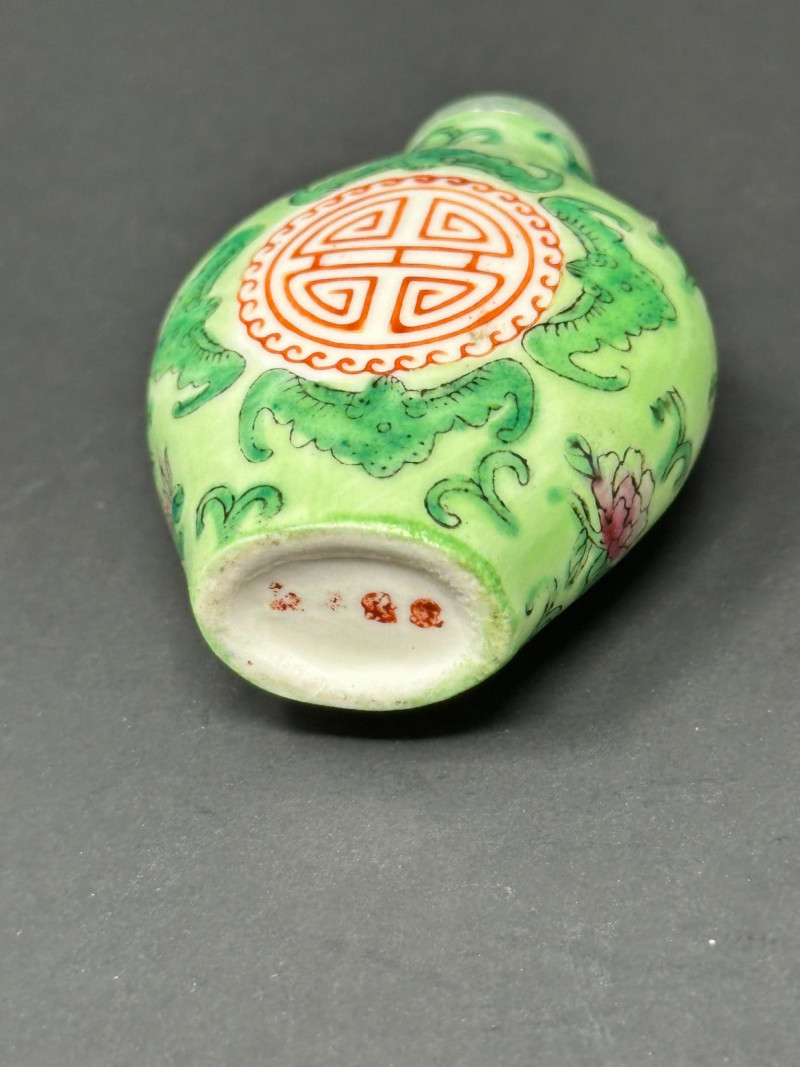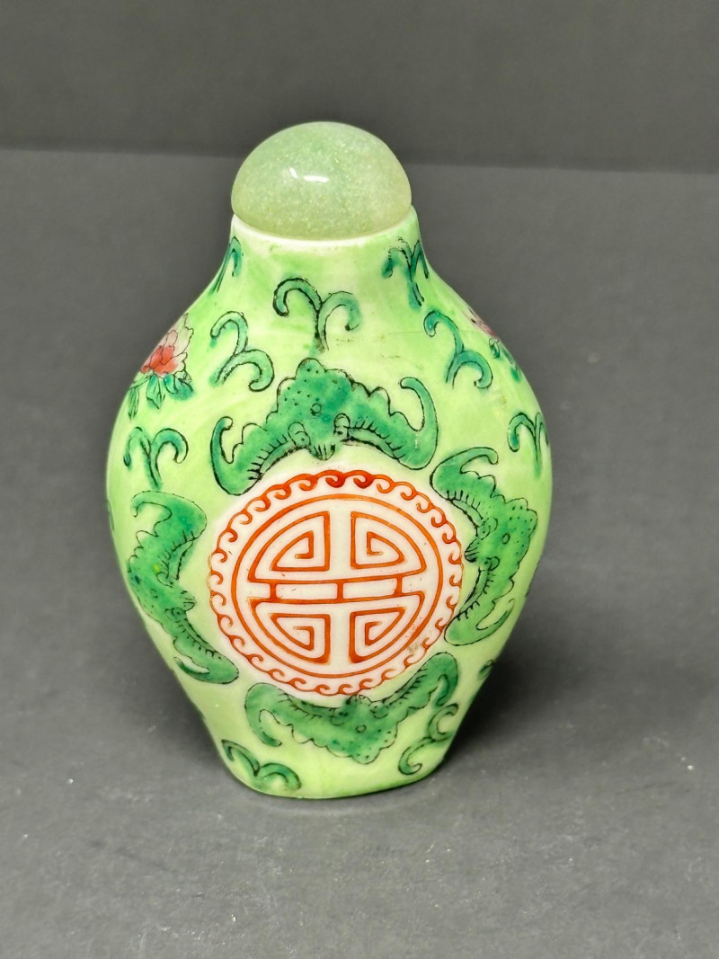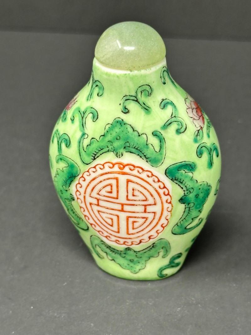 Lot # 26 - Trio of Chinese Snuff Bottles – Two Painted Porcelain & One Stone