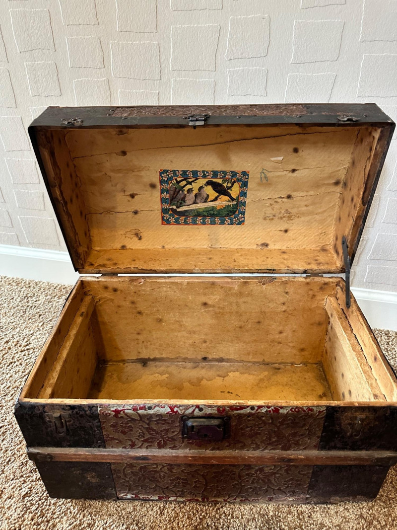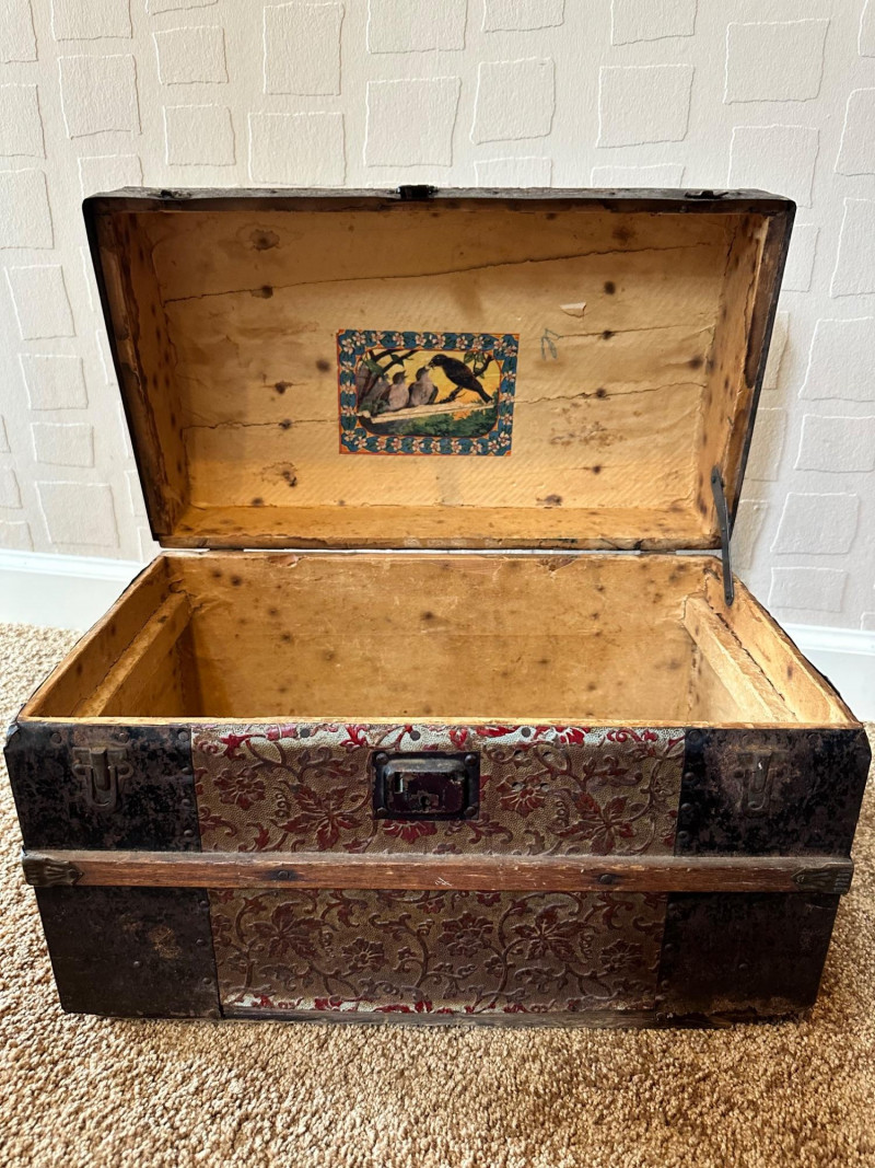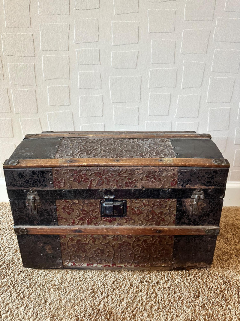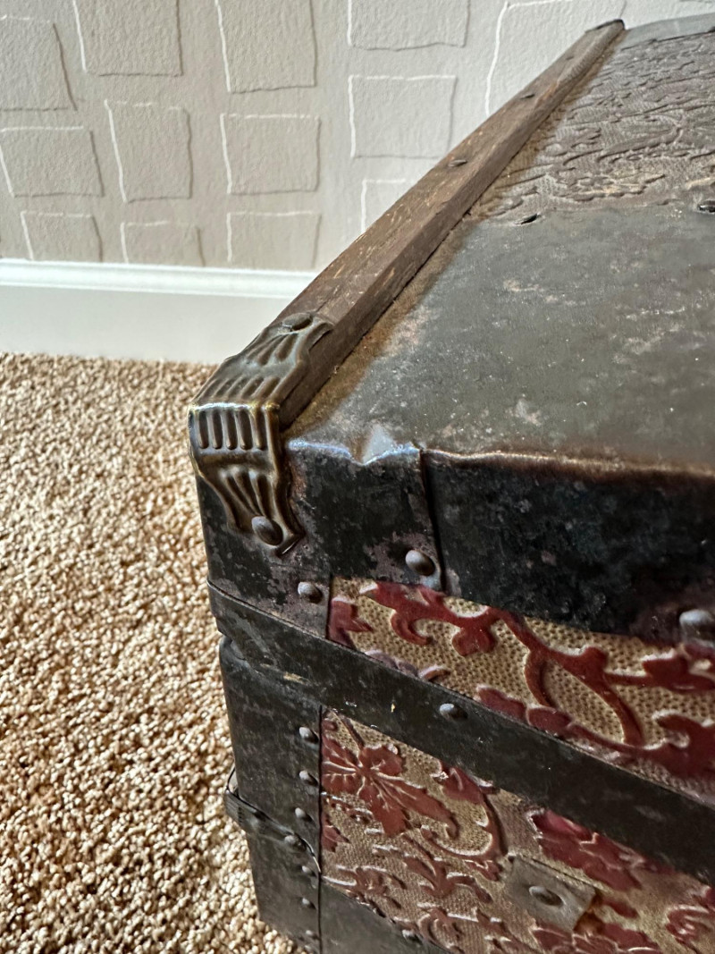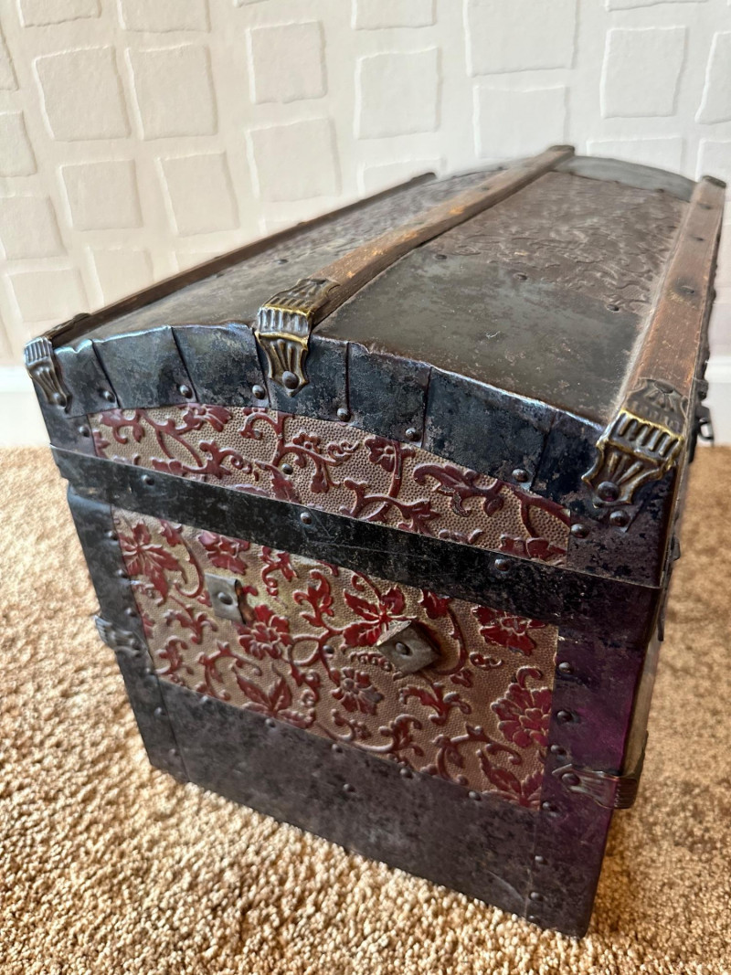 Lot # 27 - Antique Small Steamer Trunk – Embossed Floral Panels & Metal Hardware