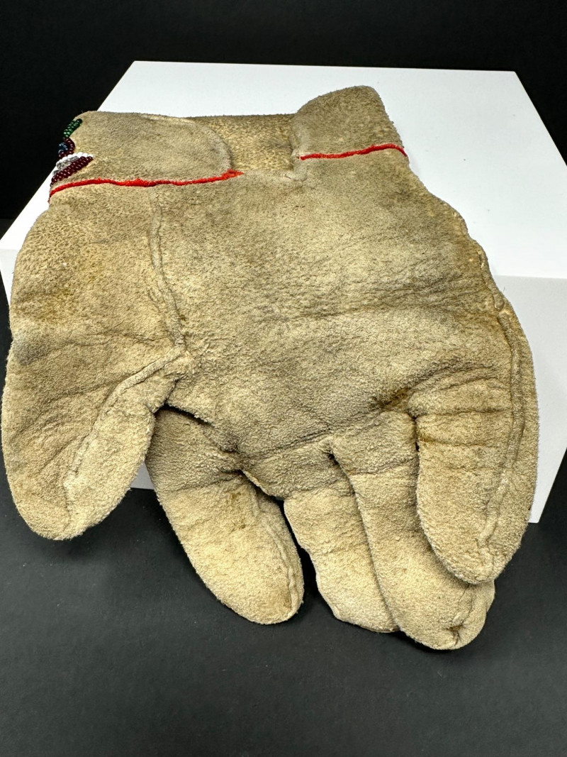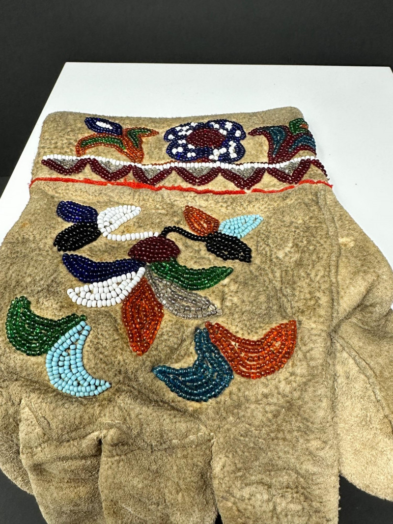Lot # 40 - Antique Sioux Woman’s Beaded Leather Gloves – Floral Motif