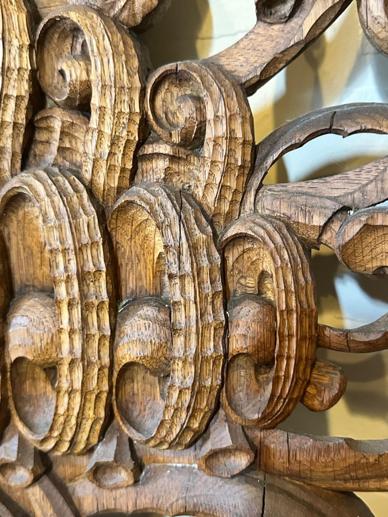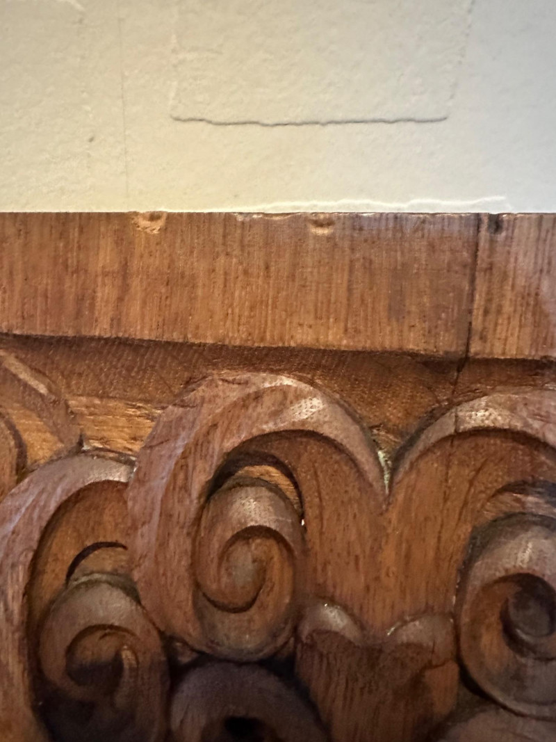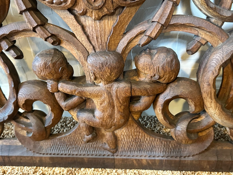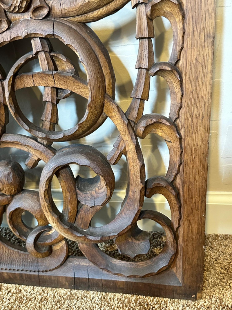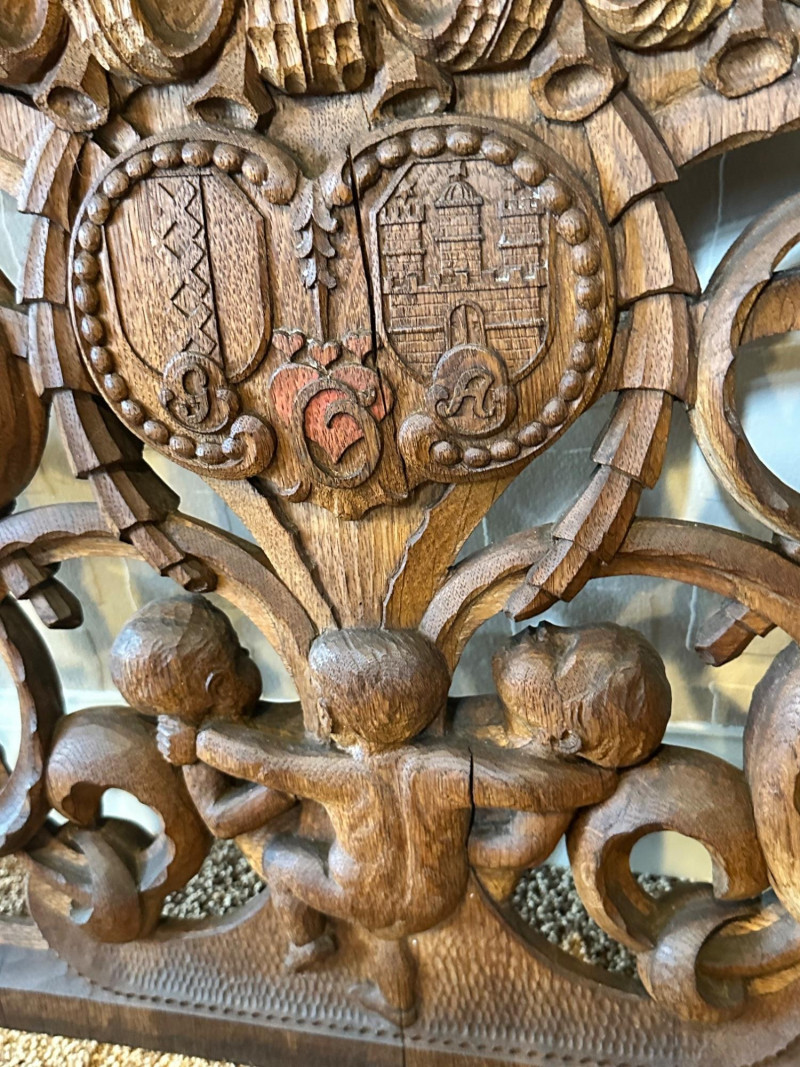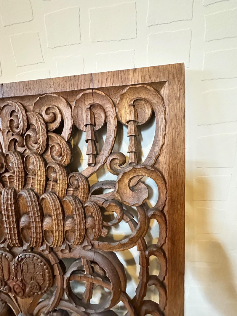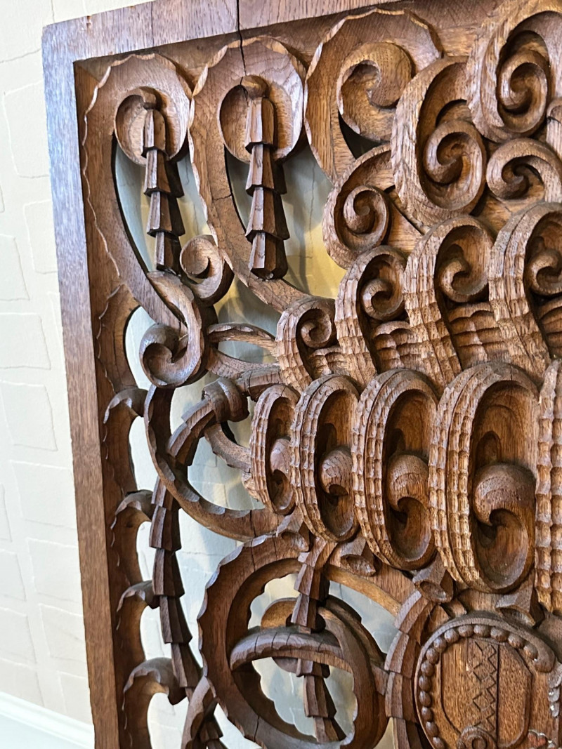 Lot # 41 - Hand-Carved Solid Wood Panel – Crown, Heart & Figures Motif
