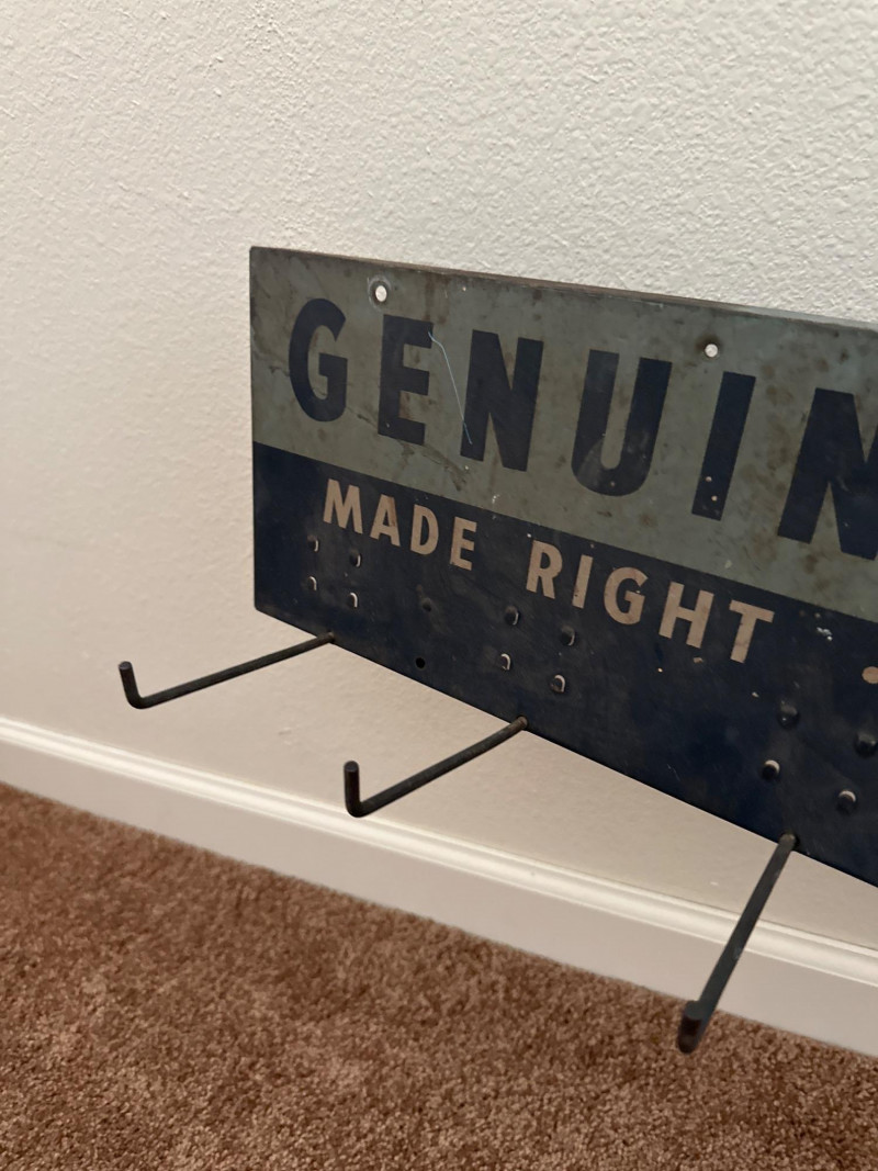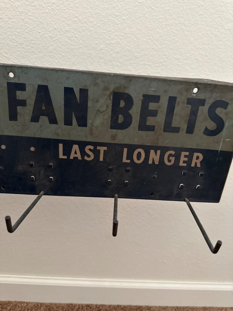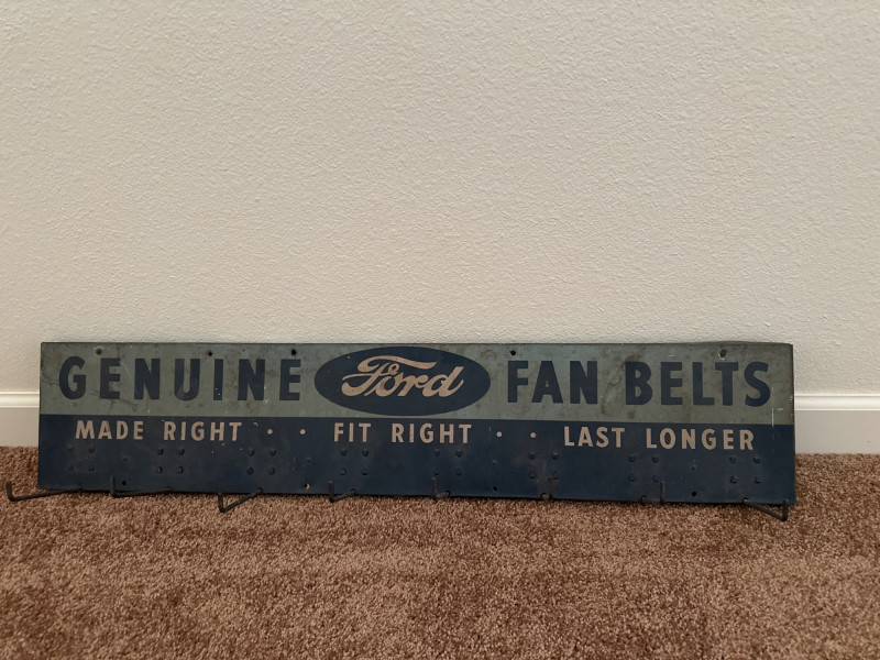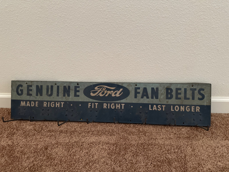 Lot # 45 - Antique Ford Fan Belts Metal Sign- Six Metal Pegs For Hanging